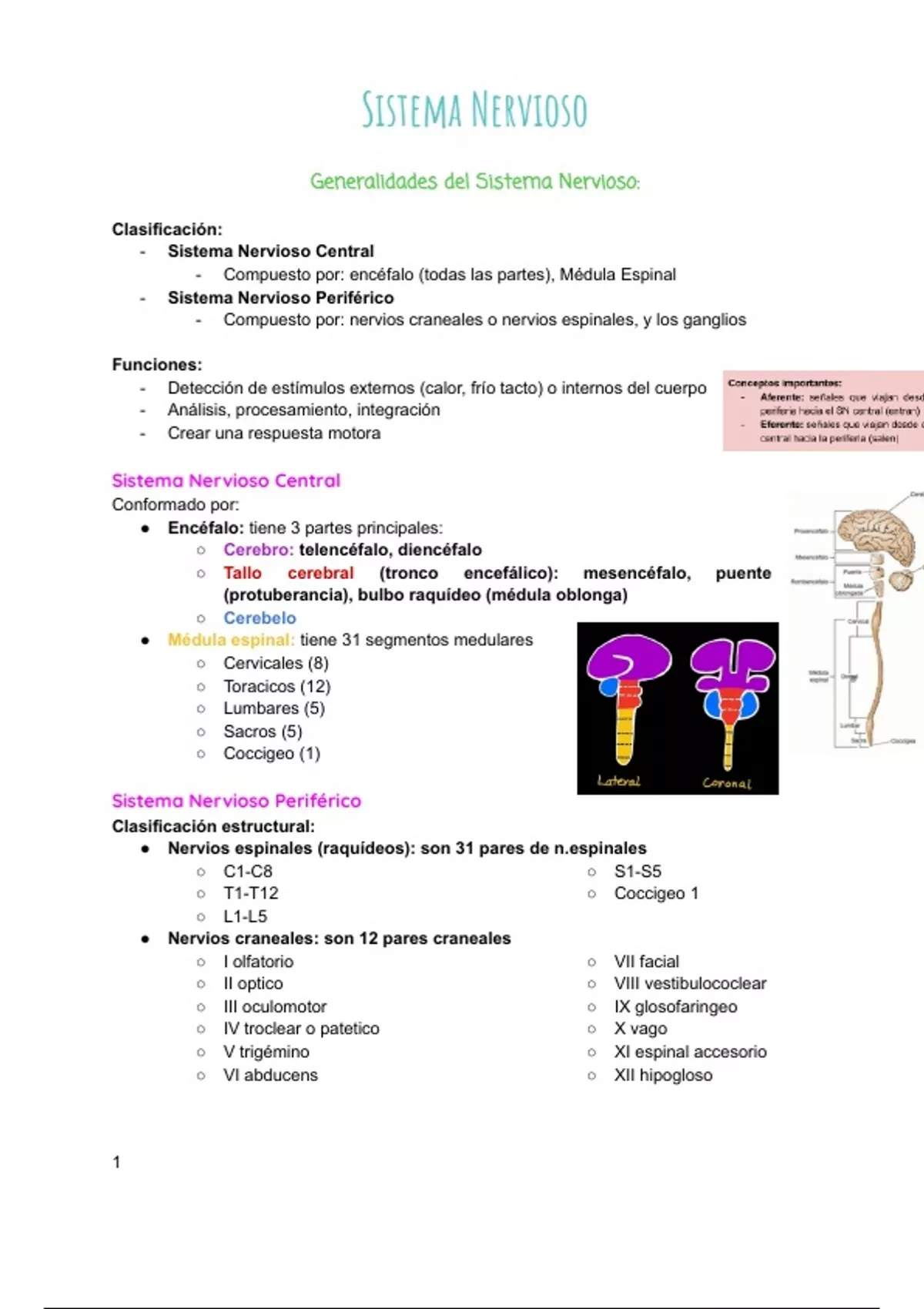 Generalidades del Sistema Nervioso: