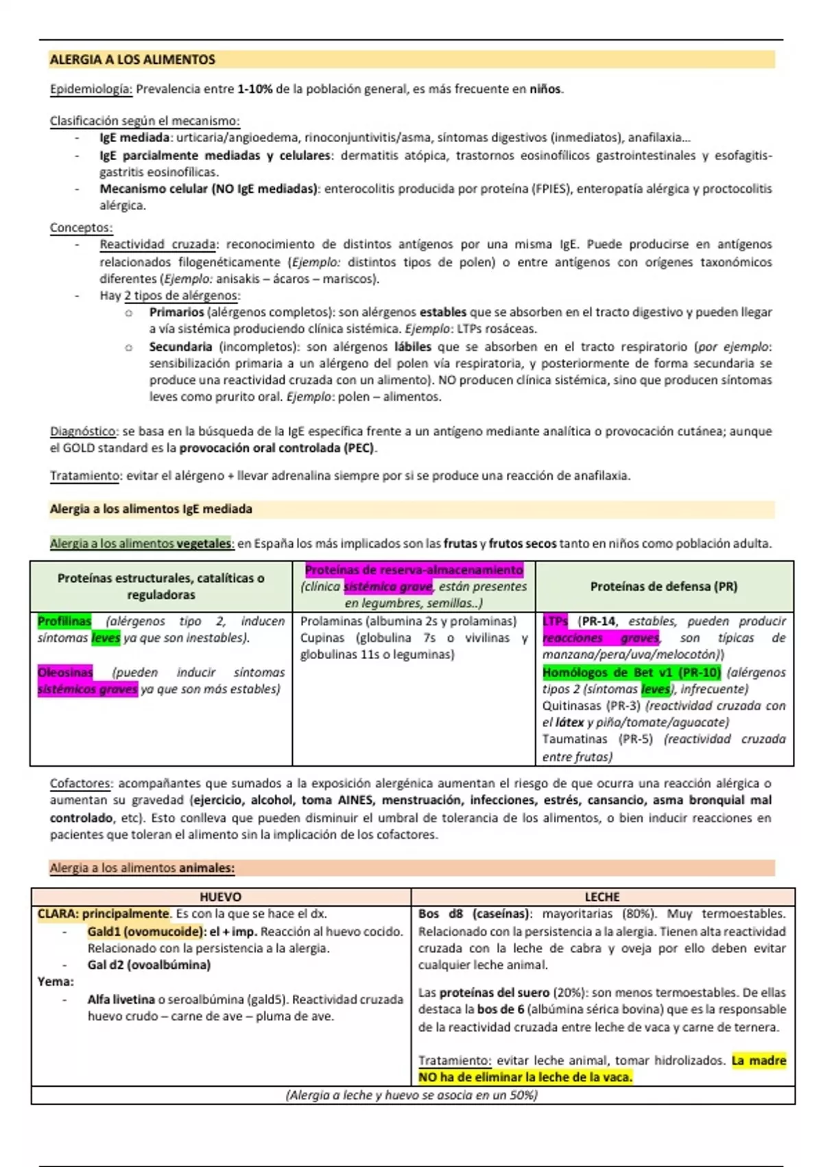 - Gald1 (ovomucoide): el + imp. Reacción al huevo cocido. Relacionado con la persistencia a la alergia. Tienen alta reactividad