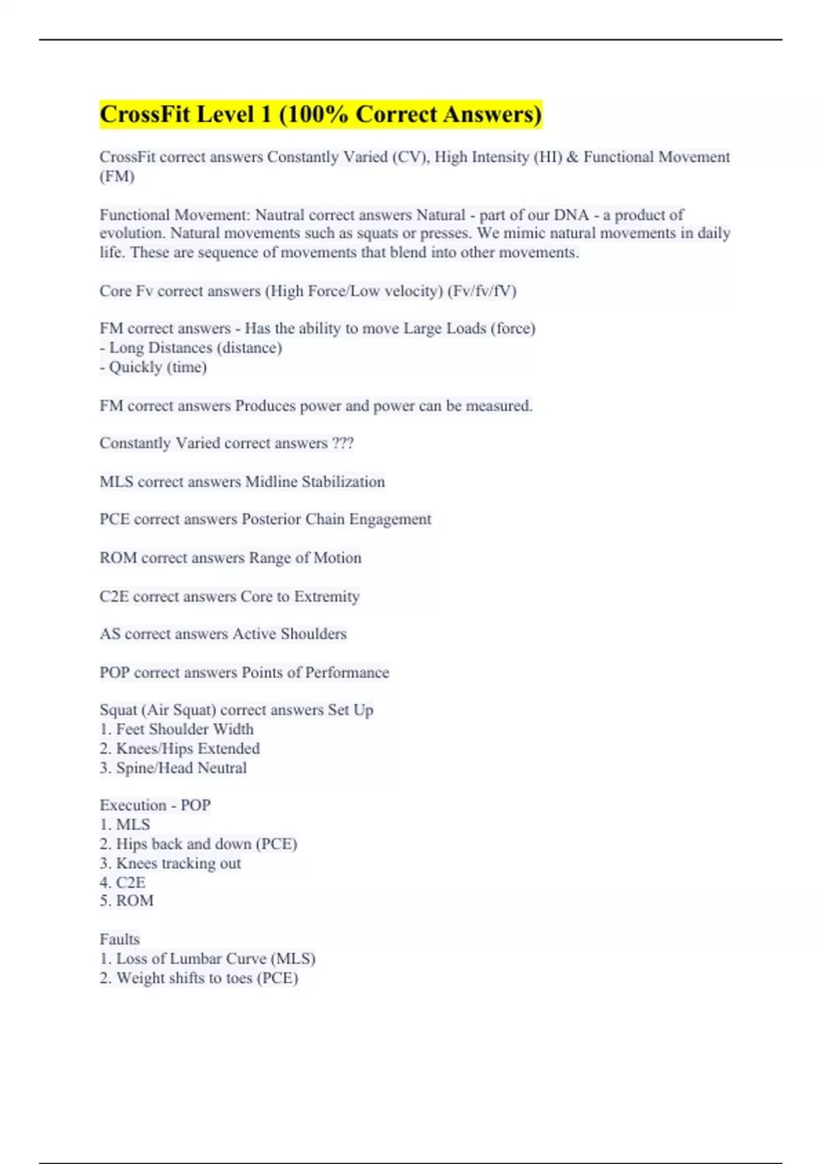 CrossFit correct answers Constantly Varied (CV), High Intensity (HI) & Functional Movement (FM)