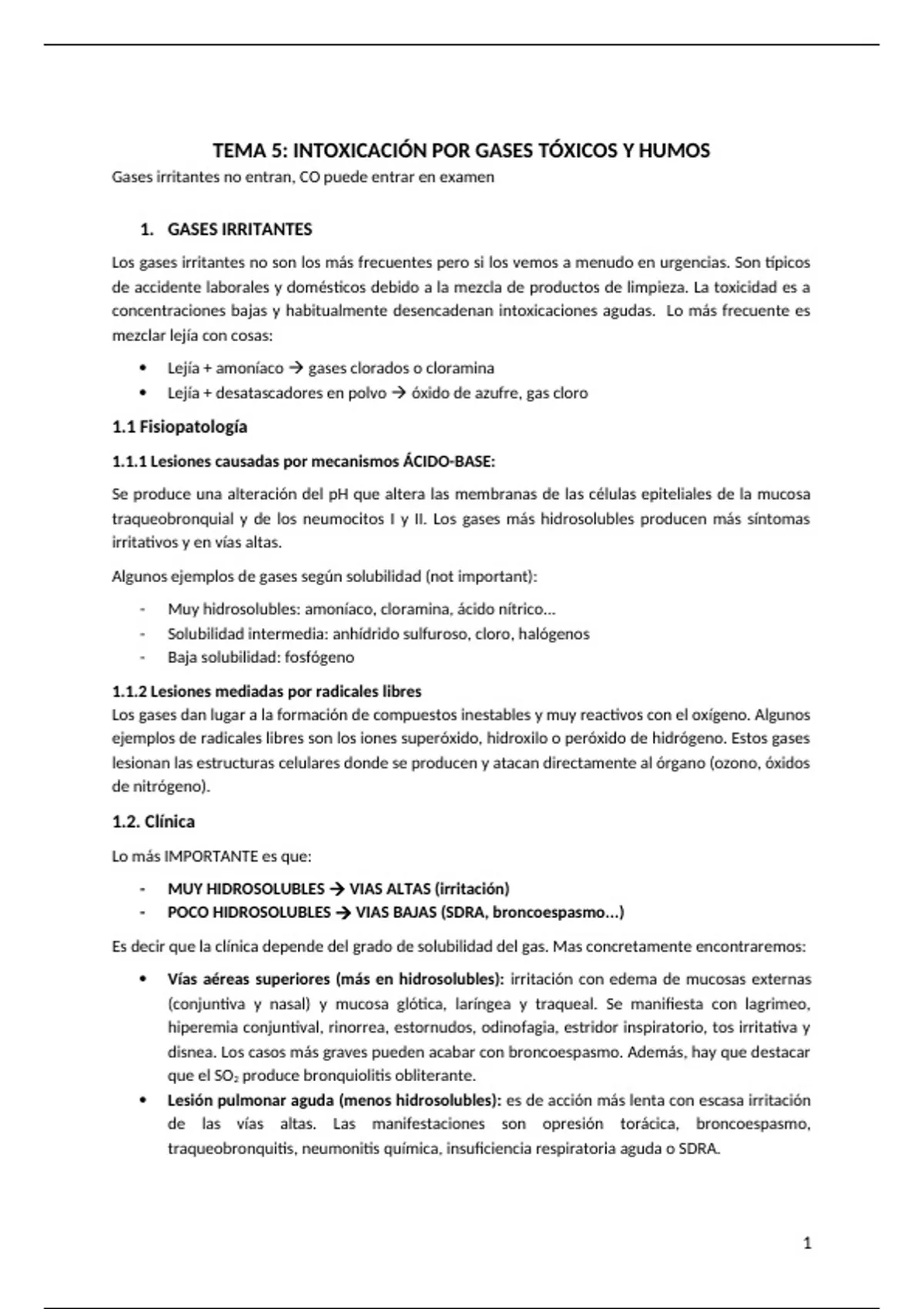 TEMA 5: INTOXICACIÓN POR GASES TÓXICOS Y HUMOS