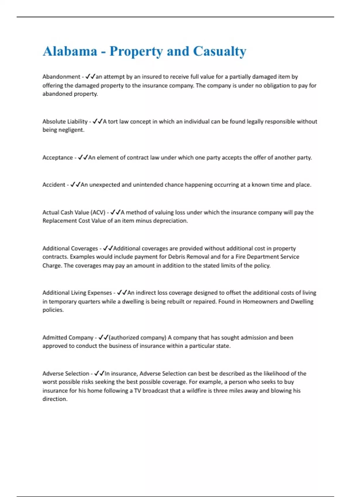 Alabama - Property and Casualty | 309 Questions and Answers(A+ Solution guide)
