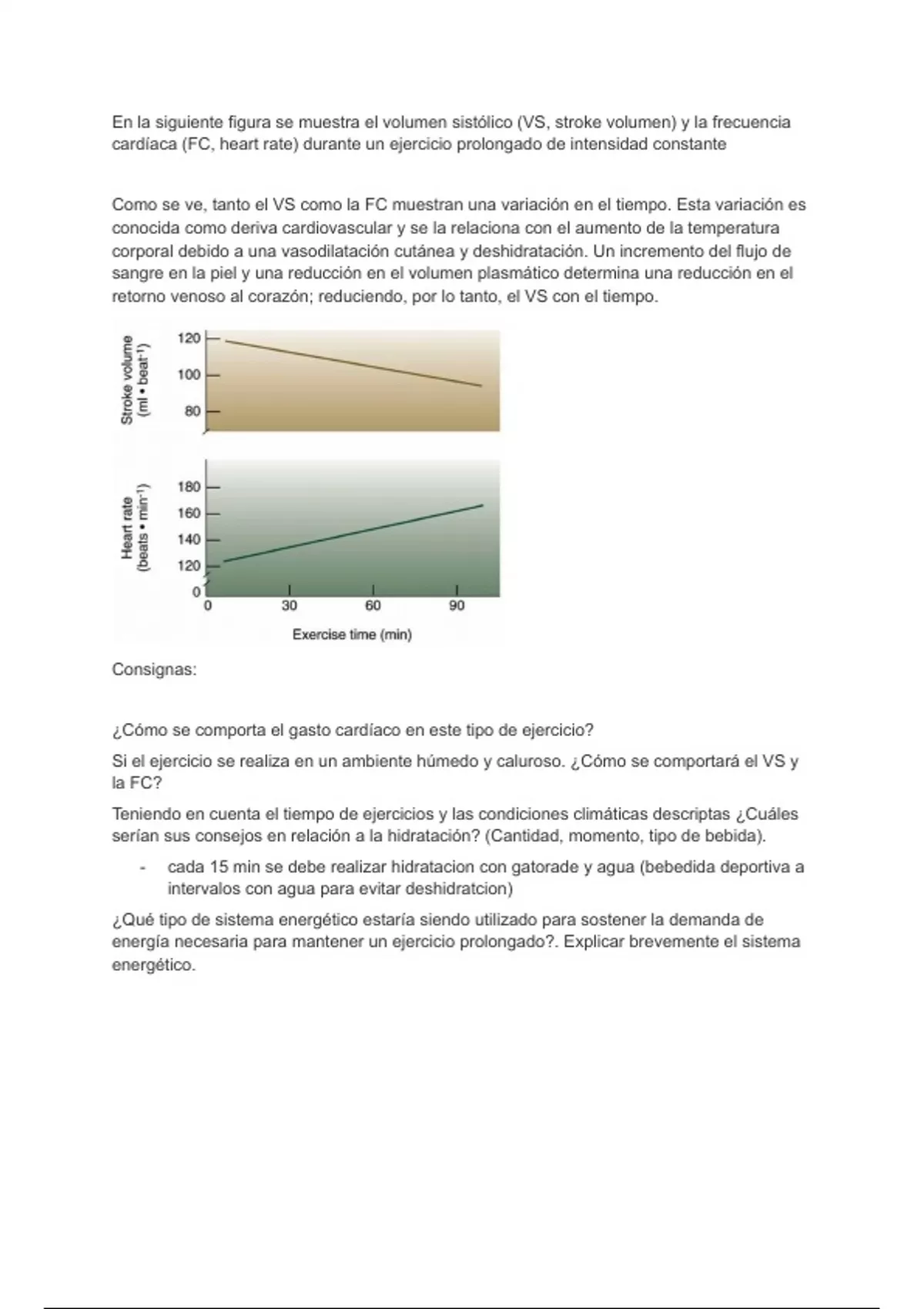 En la siguiente figura se muestra el volumen sistólico (VS, stroke volumen) y la frecuencia