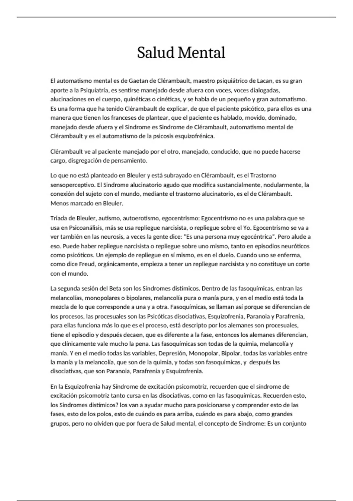 Lo que no está planteado en Bleuler y está subrayado en Clérambault, es el Trastorno