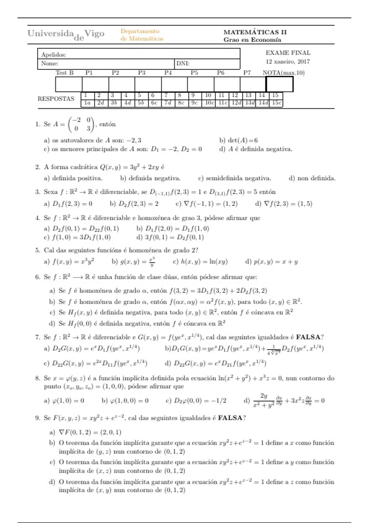 UniversidadeVigo de Matemáticas Grao en Economı́a