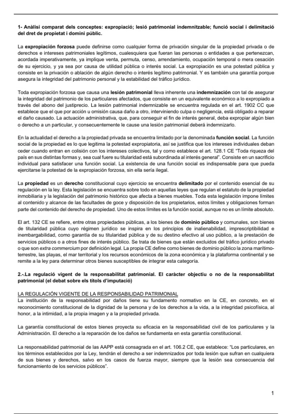 1- Anàlisi comparat dels conceptes: expropiació; lesió patrimonial indemnitzable; funció social i delimitació