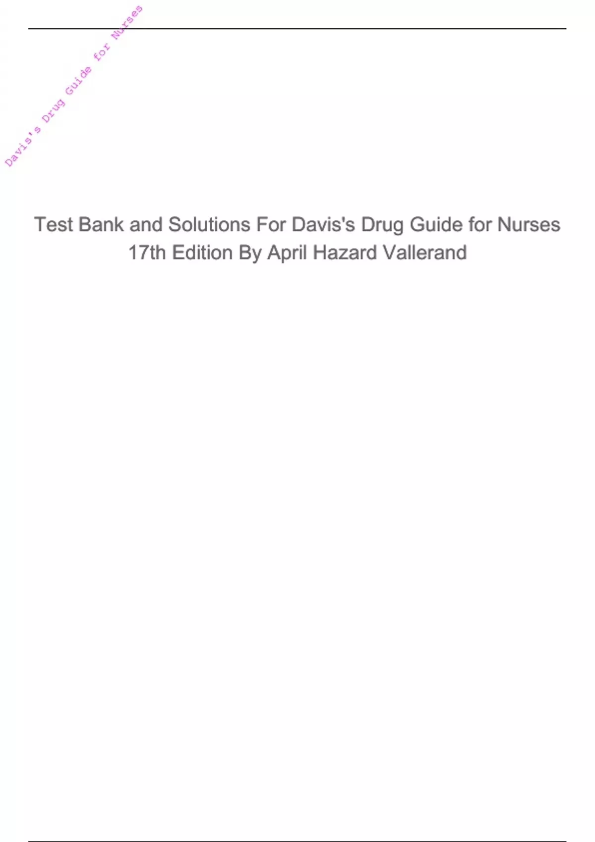 TEST BANK AND SOLUTION FOR DAVIS'S DRUG GUIDE FOR NURSES 17TH EDITION BY VALLERAND AND SANOSKI