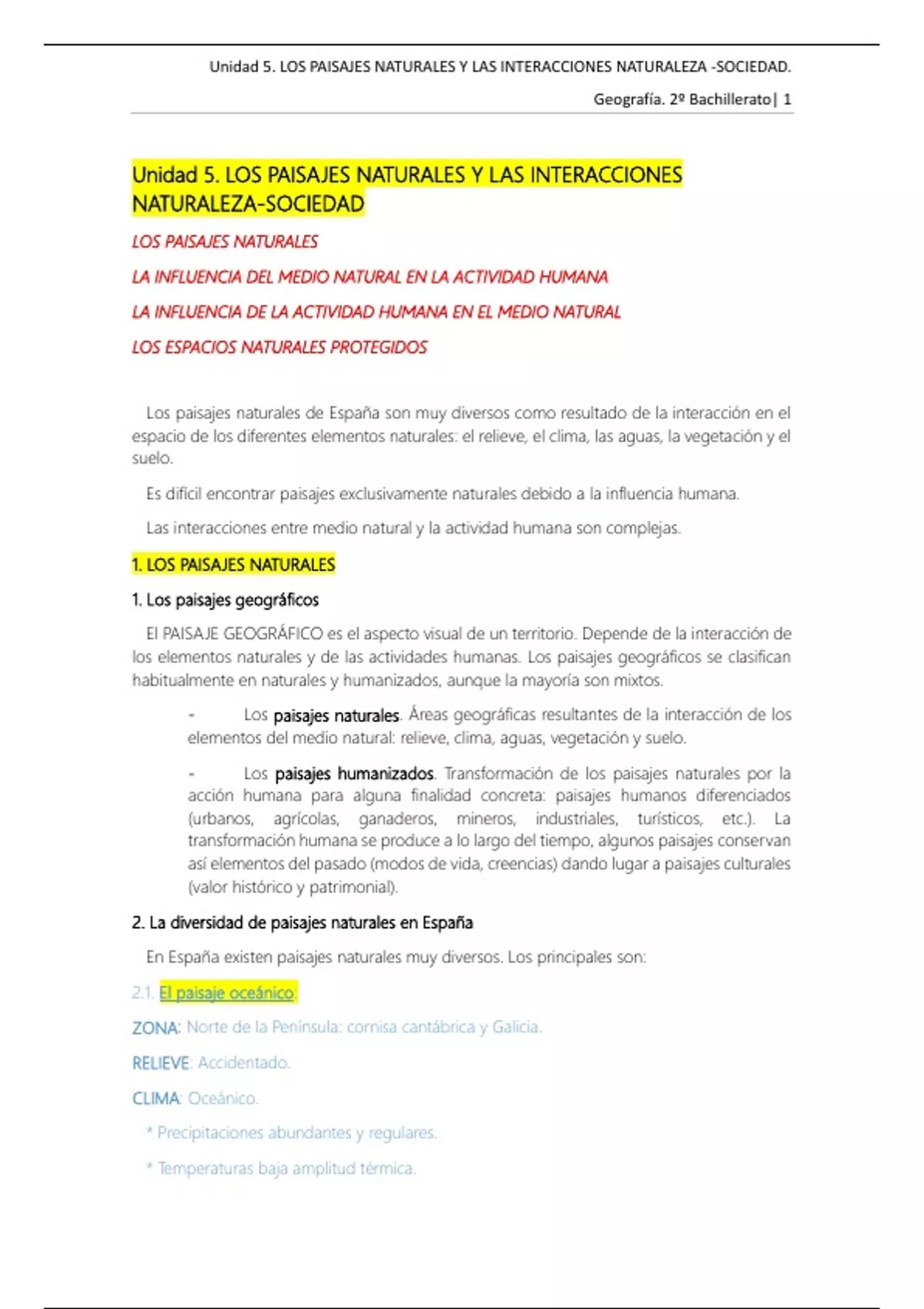 , Unidad 5. LOS PAISAJES NATURALES Y LAS INTERACCIONES NATURALEZA -SOCIEDAD.