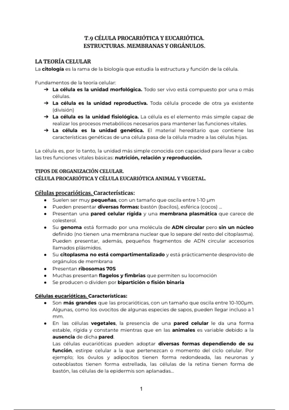 T.9 CÉLULA PROCARIÓTICA Y EUCARIÓTICA.