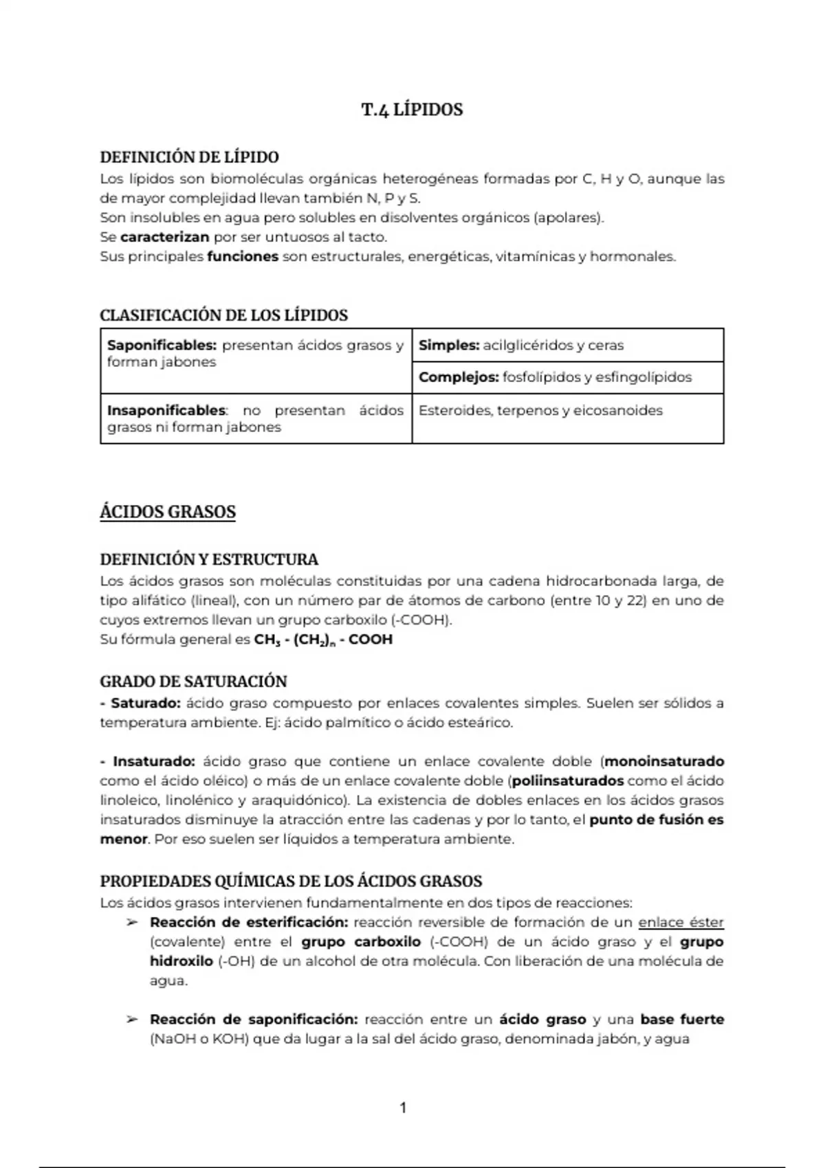 Resumen del tema 4; lípidos del temario de biología de 2bach. 10 en 2bach y 9,25 en la EBAU