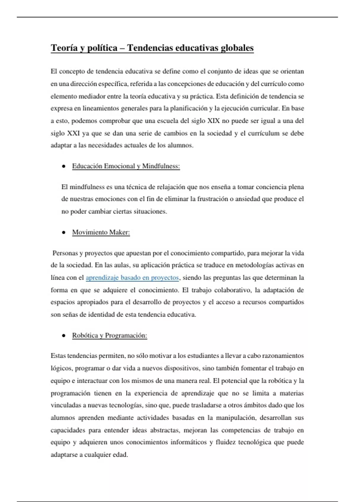 elemento mediador entre la teoría educativa y su práctica. Esta definición de tendencia se