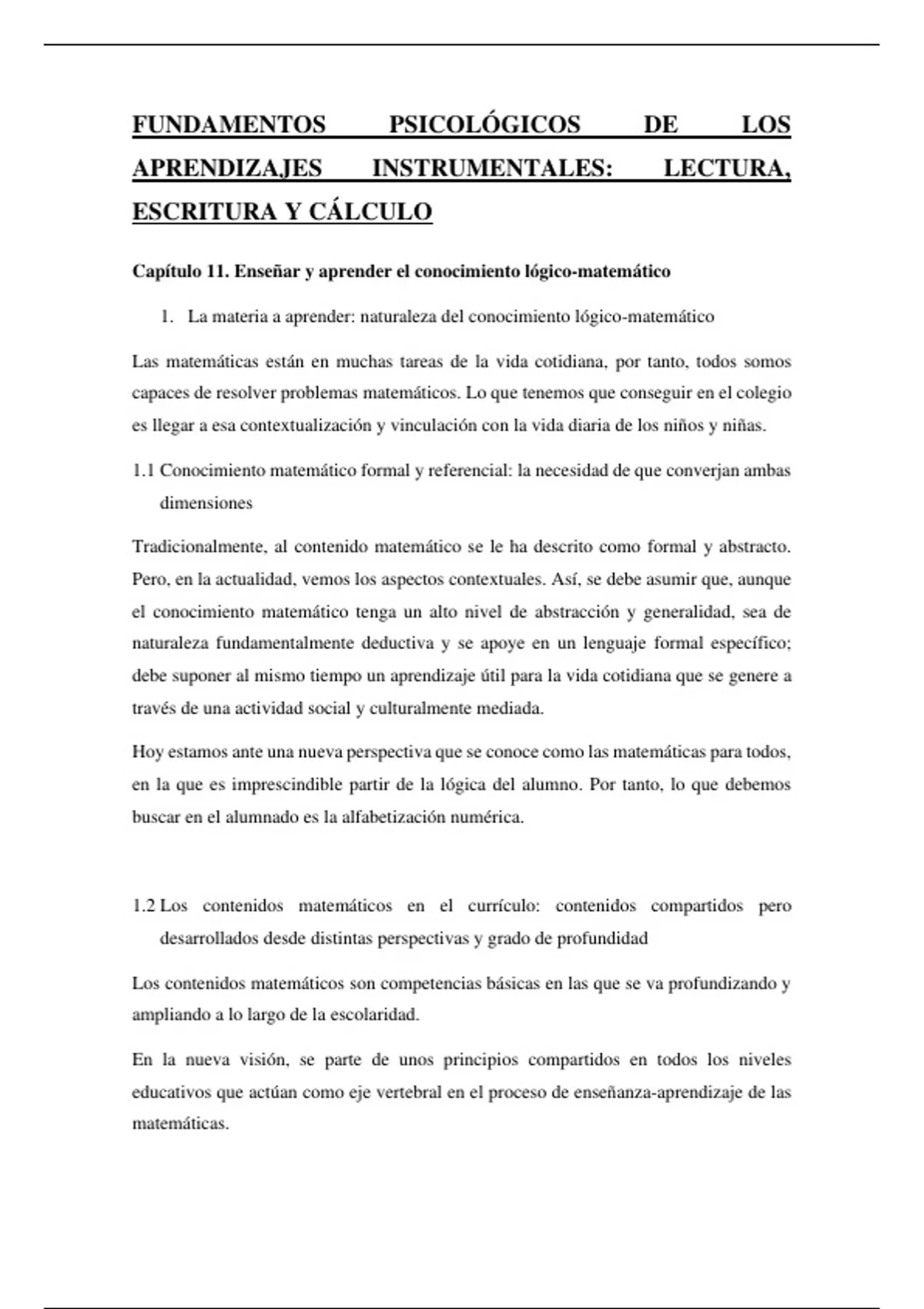 1. La materia a aprender: naturaleza del conocimiento lógico-matemático