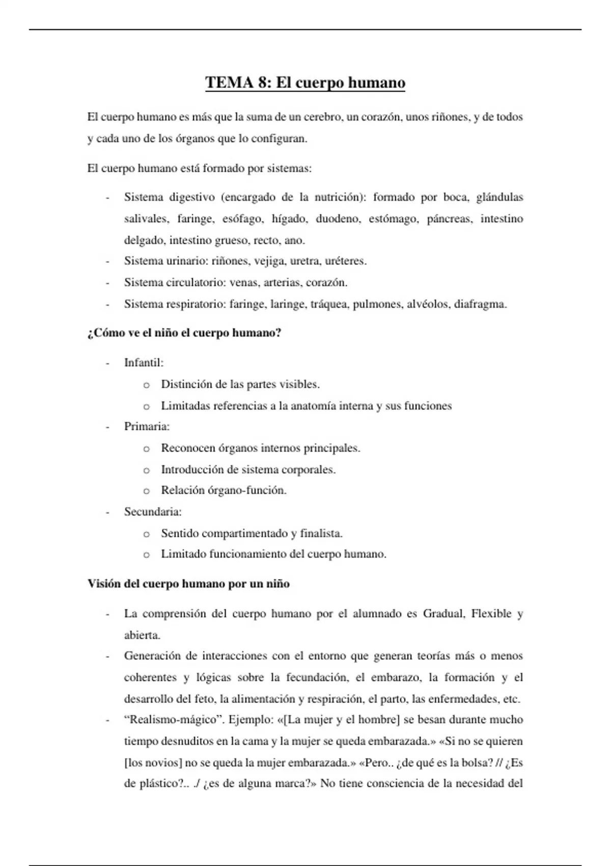 - La comprensión del cuerpo humano por el alumnado es Gradual, Flexible y