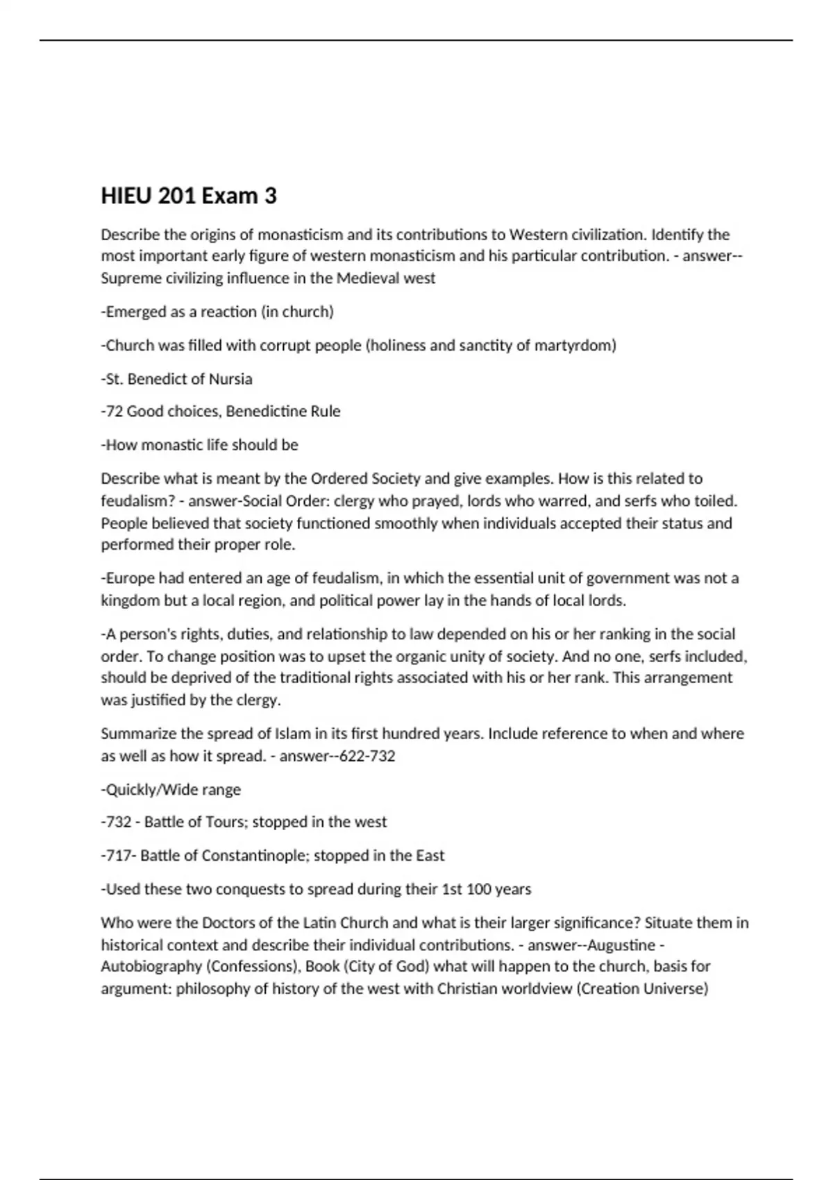 Exam of 4 pages for the course HIEU 201 at HIEU 201 (HIEU 201 Exam 3)