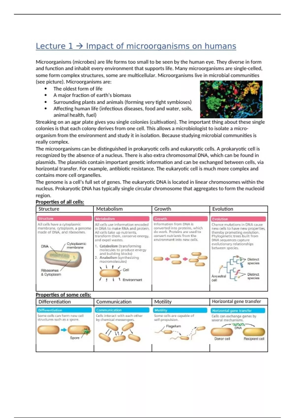 Differentiation Communication Motility Horizontal gene transfer