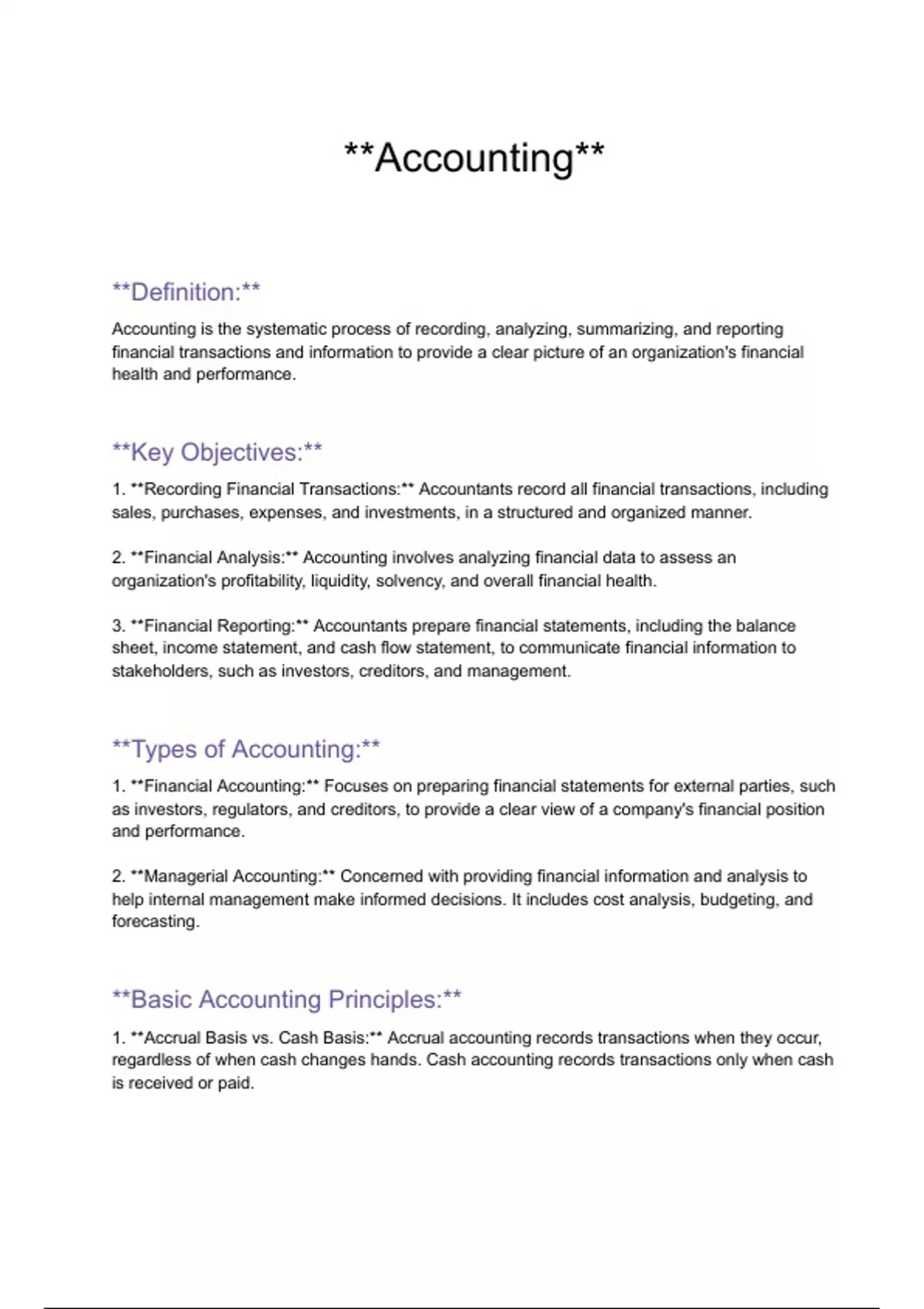 notes on basics of accunting