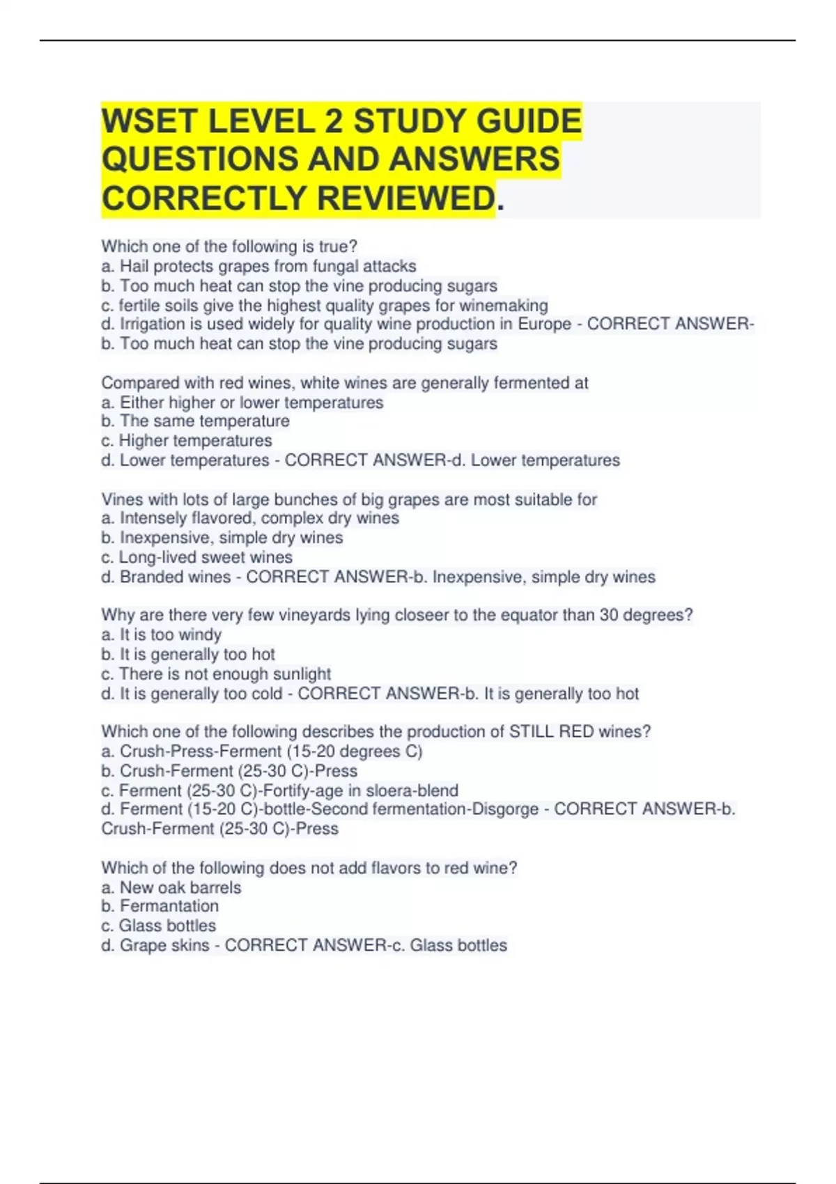 WSET LEVEL 2 STUDY GUIDE QUESTIONS AND ANSWERS CORRECTLY REVIEWED