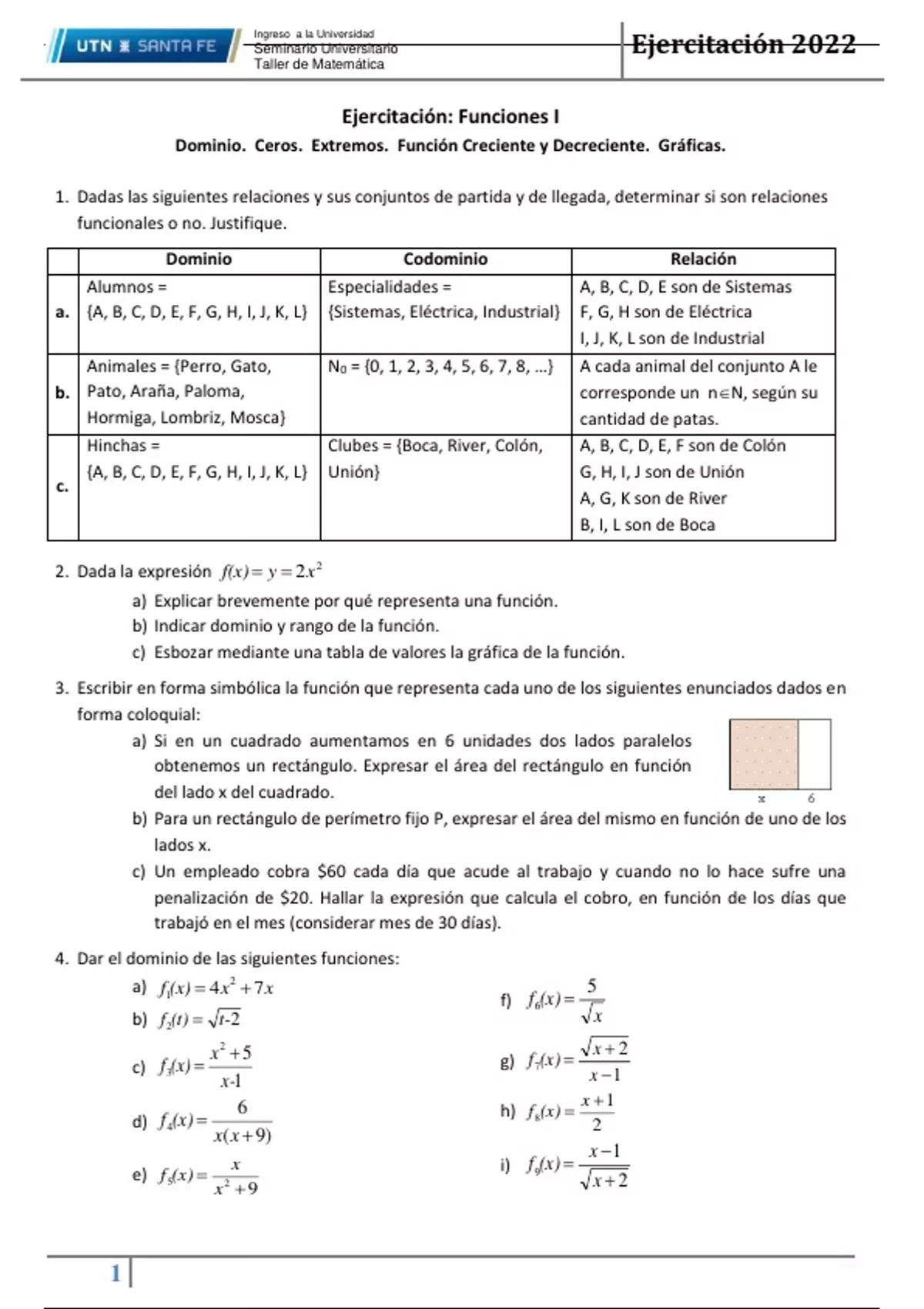 1. Dadas las siguientes relaciones y sus conjuntos de partida y de llegada, determinar si son relaciones