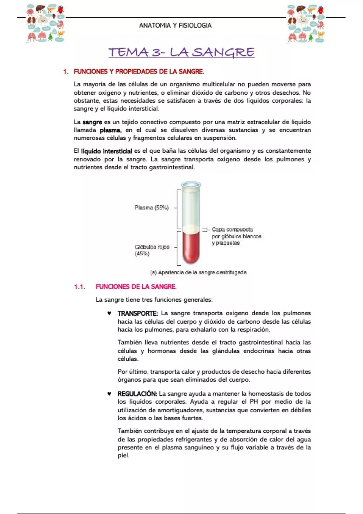 1. FUNCIONES Y PROPIEDADES DE LA SANGRE.