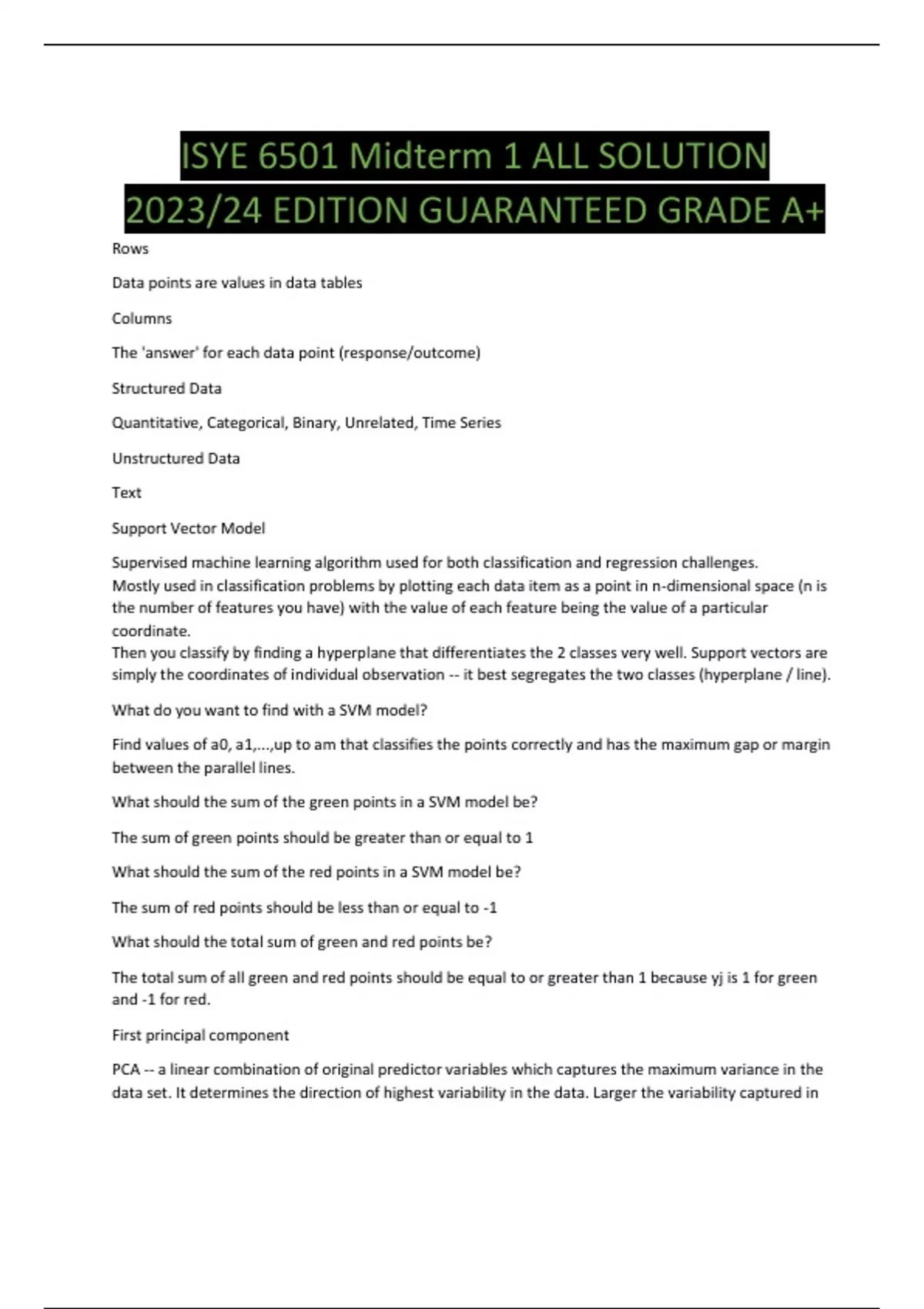 ISYE 6501 Midterm 1 ALL SOLUTION 2023/24 EDITION GUARANTEED GRADE A+