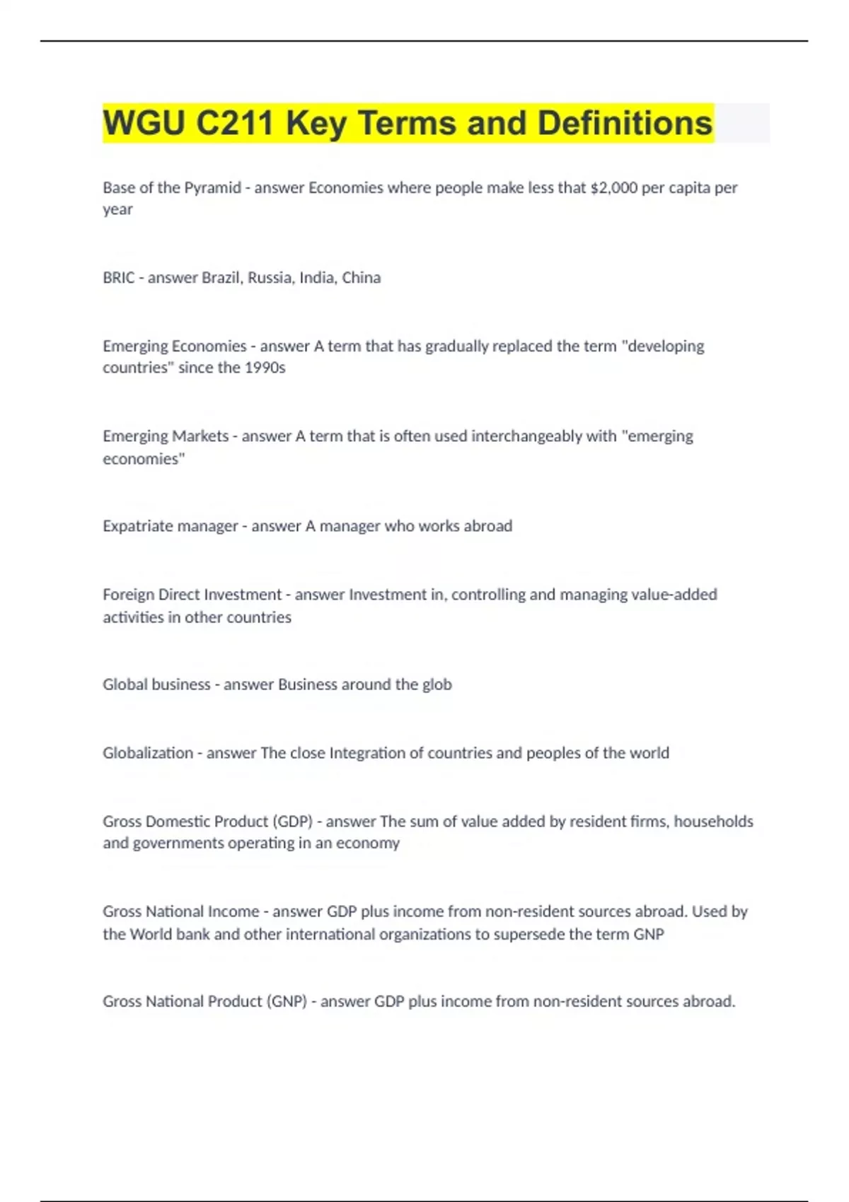 WGU C211 Key Terms and Definitions|GUARANTEED SUCCESS