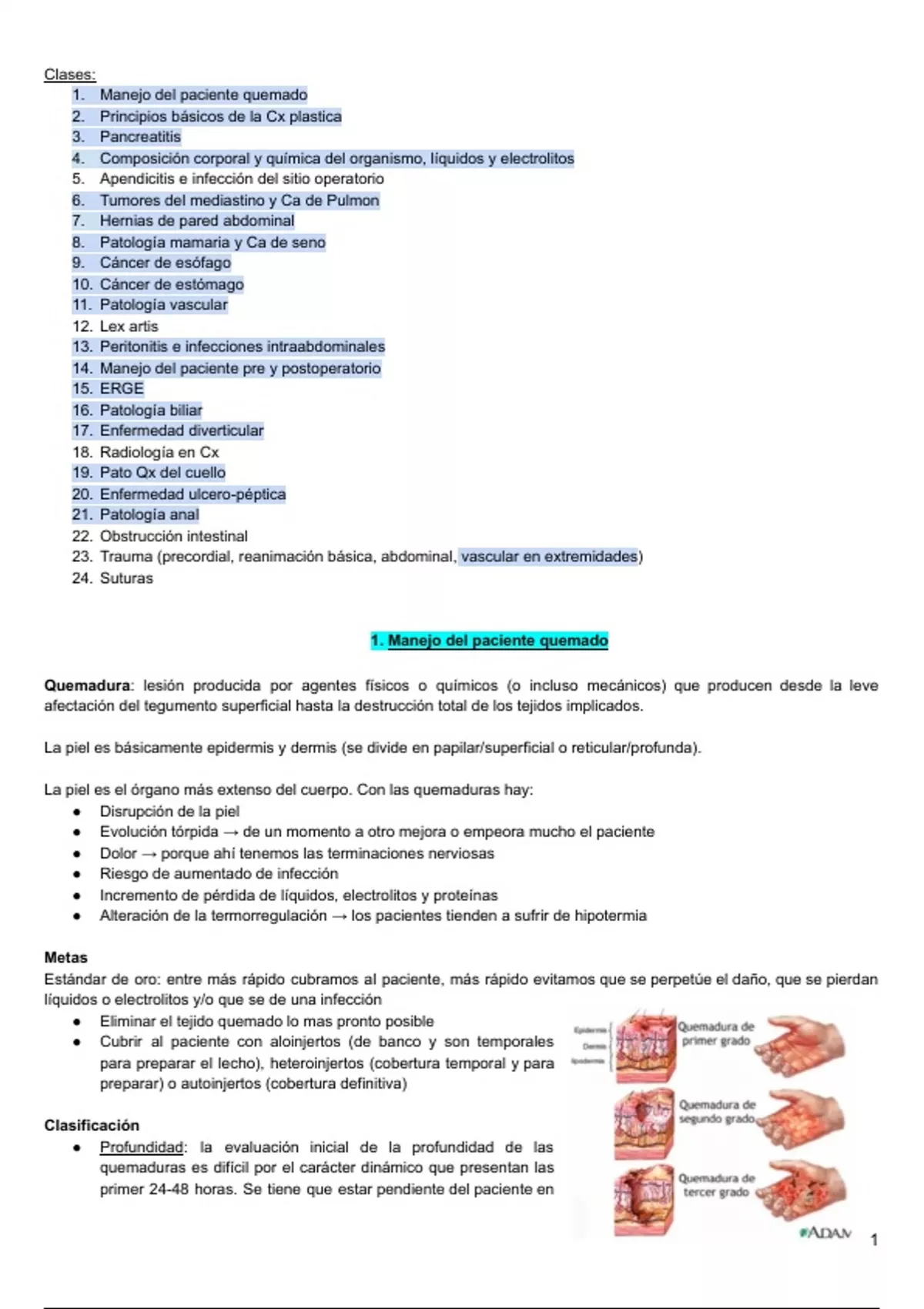 1. Quemaduras de 2do grado >10% de la SCT (superficie corporal total)