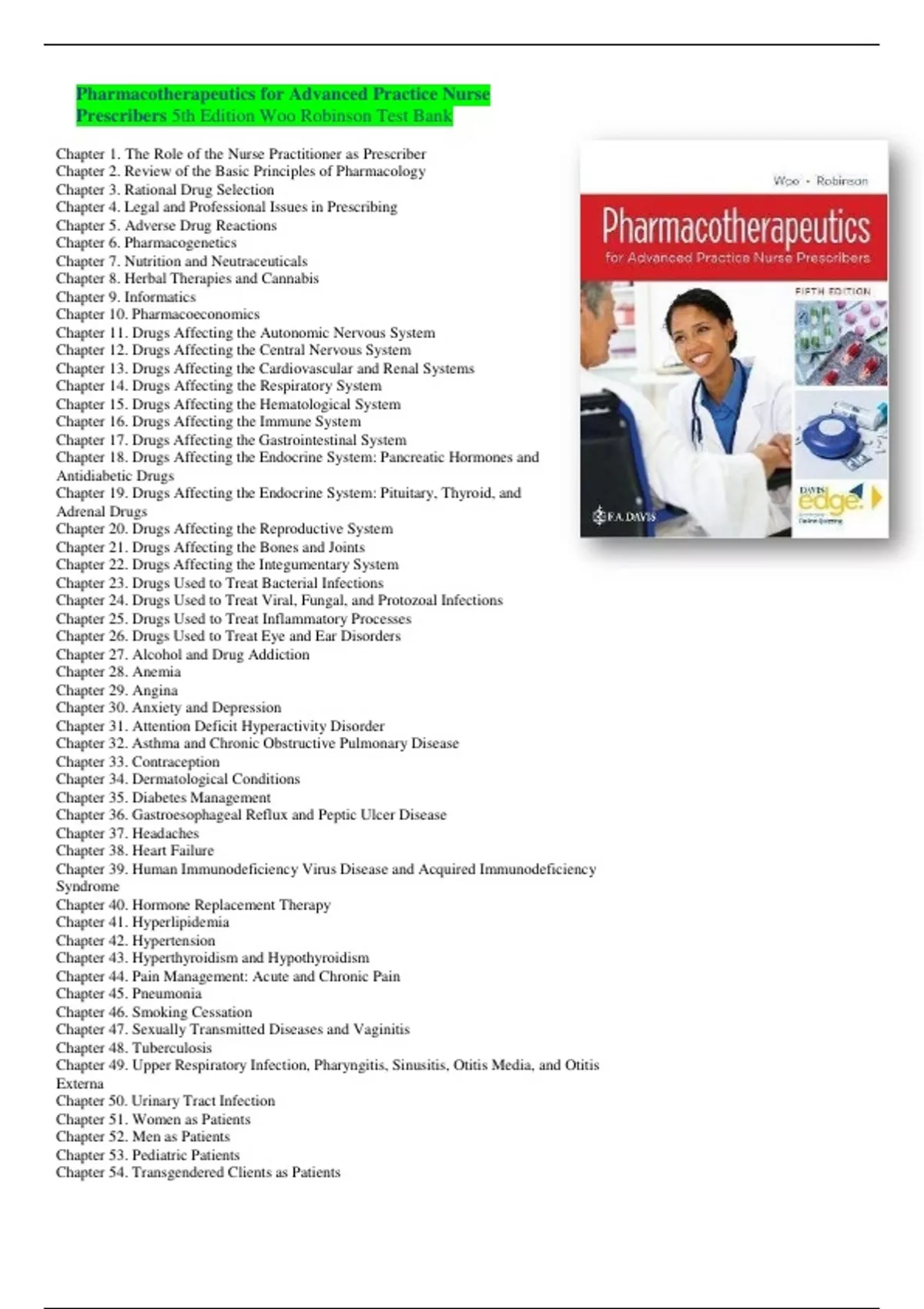 Prescribers 5th Edition Woo Robinson Test Bank