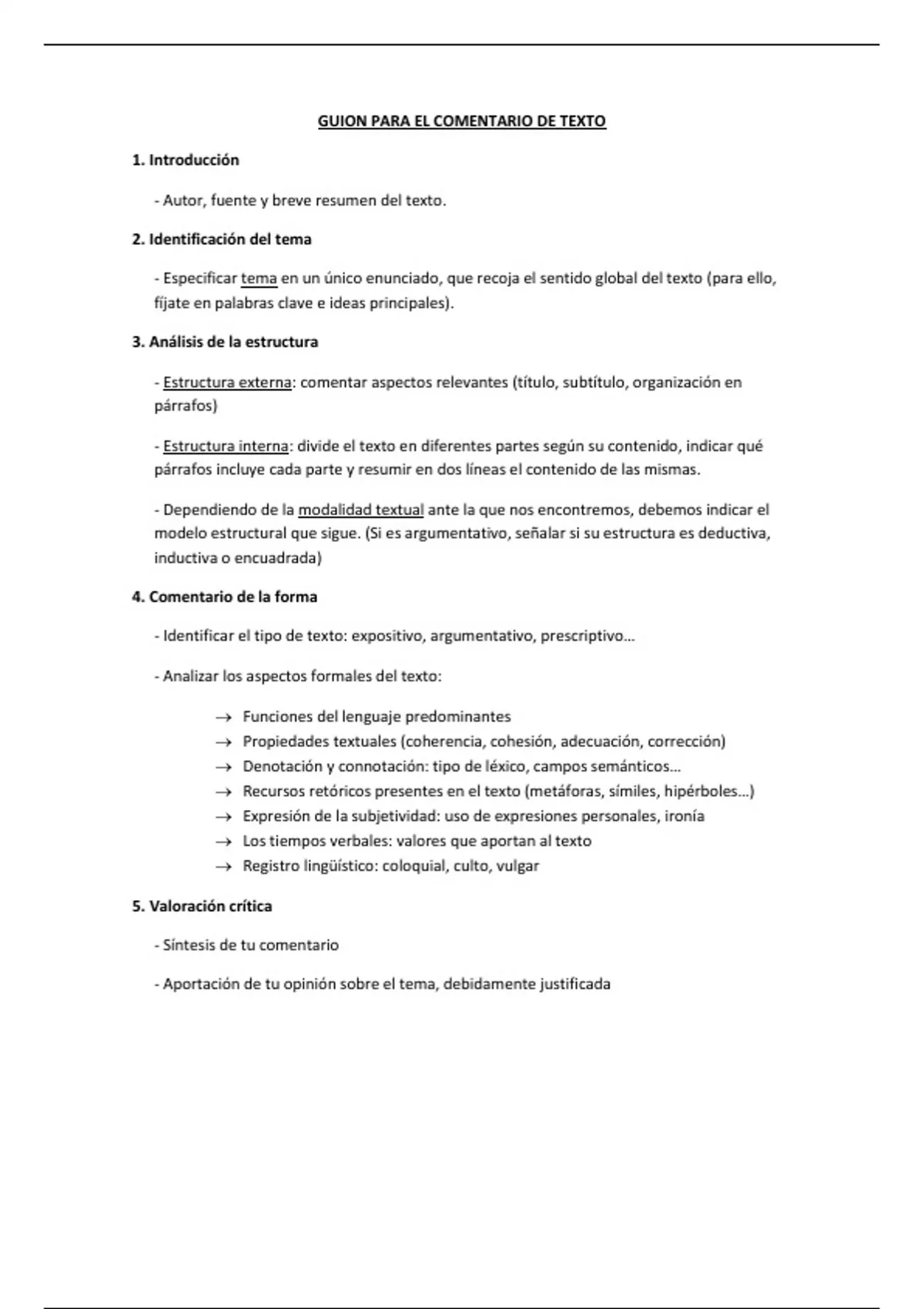 Sumario Guion y pasos a seguir para realizar un buen comentario de texto