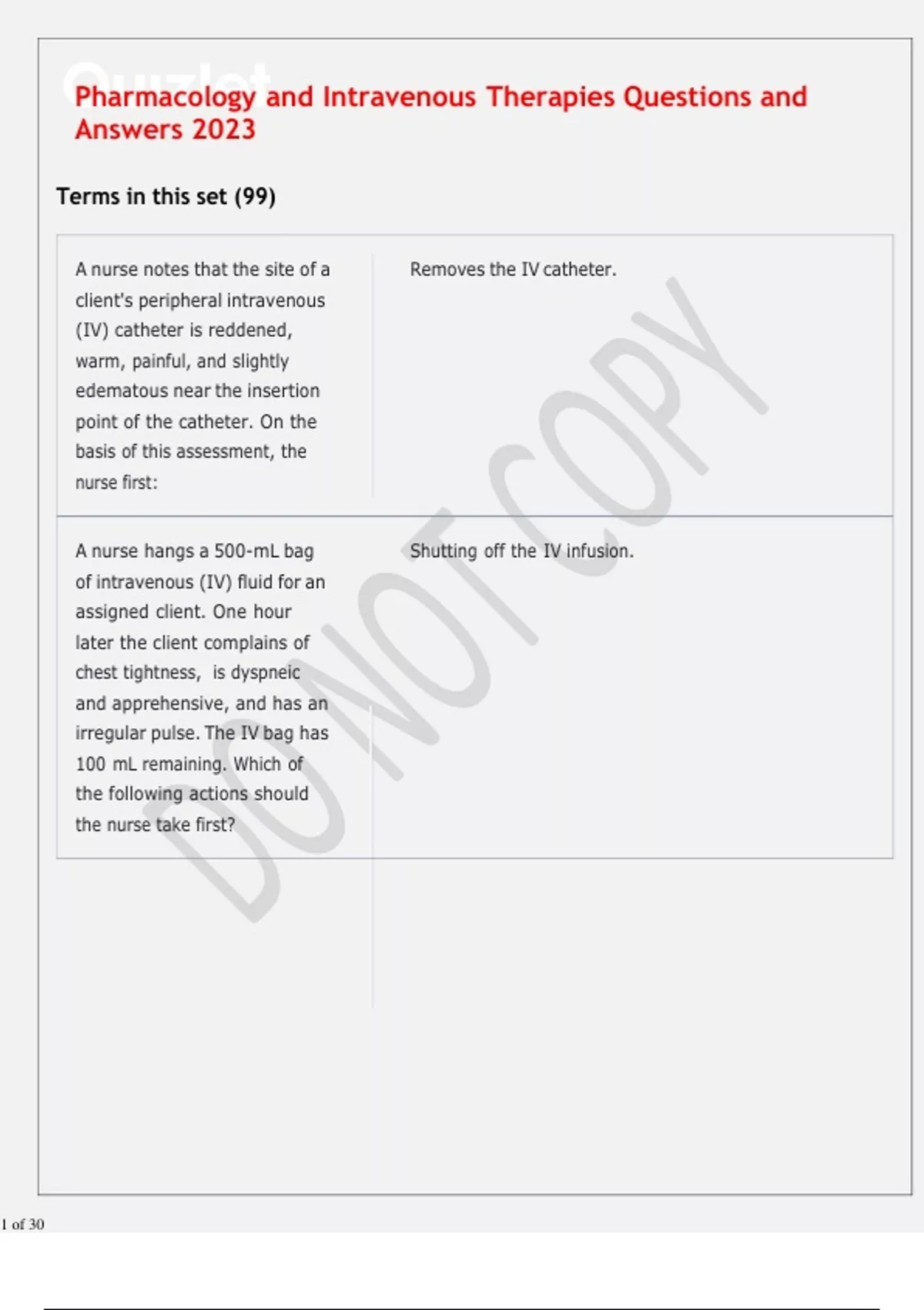 Pharmacology and Intravenous Therapies Questions and Answers 2023