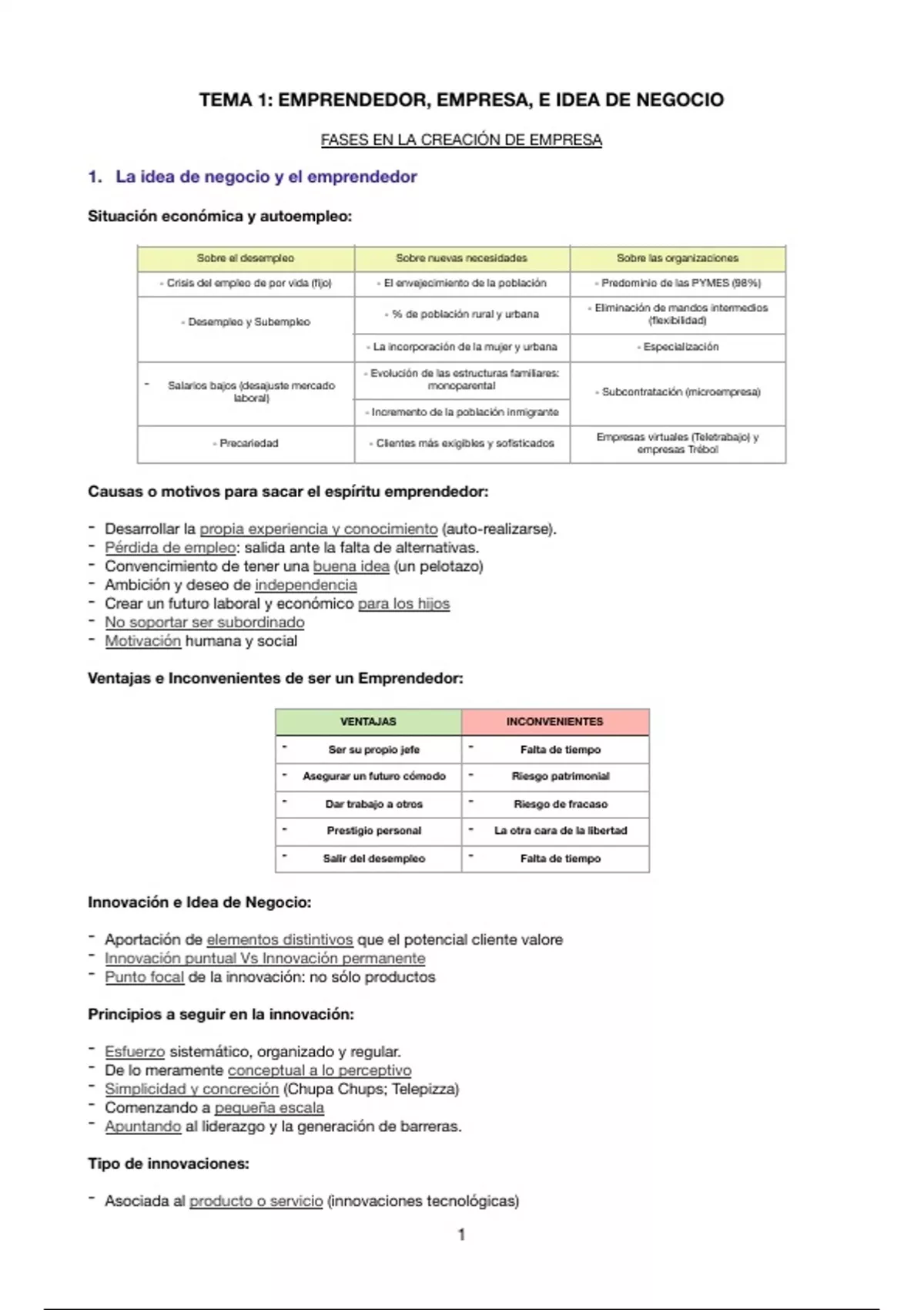 Apuntes cogidos en clase tema 1 de creación de empresas