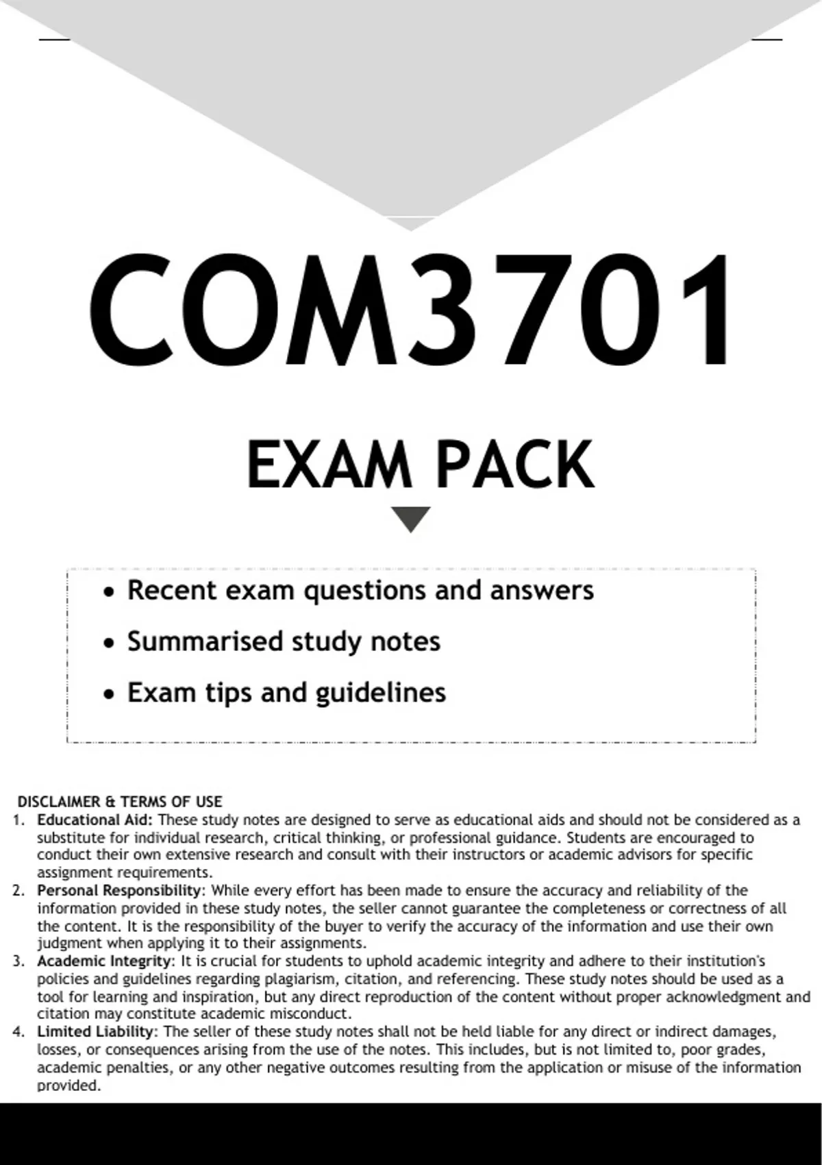 Well-structured COM3701 EXAM PREPARATION PACK - DISTINCTION GUARANTEED. Contains recent exam questions and answers, and Summarised study notes. All you need to pass the OCTOBER NOVEMBER 2023 EXAMS
