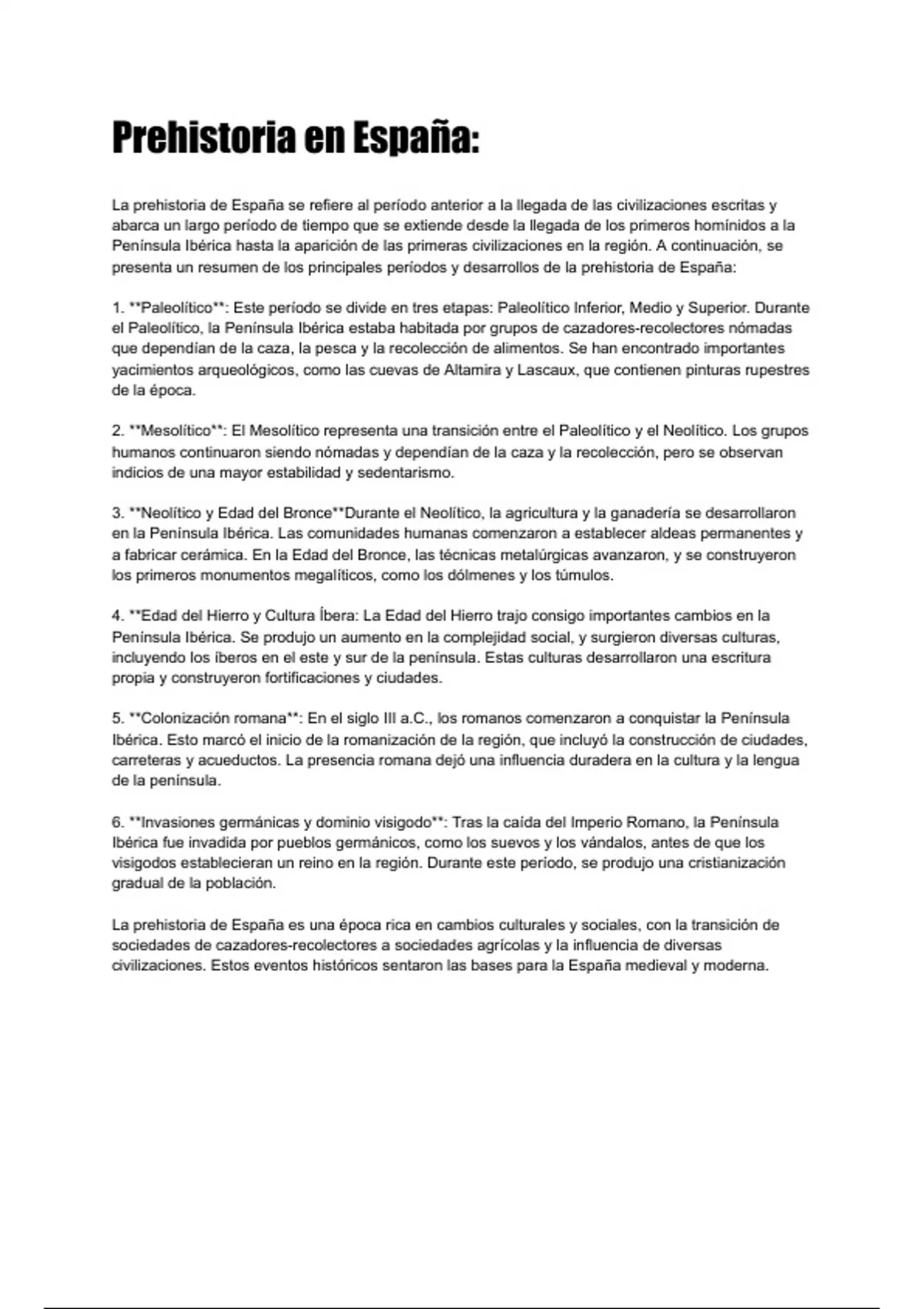 presenta un resumen de los principales períodos y desarrollos de la prehistoria de España: