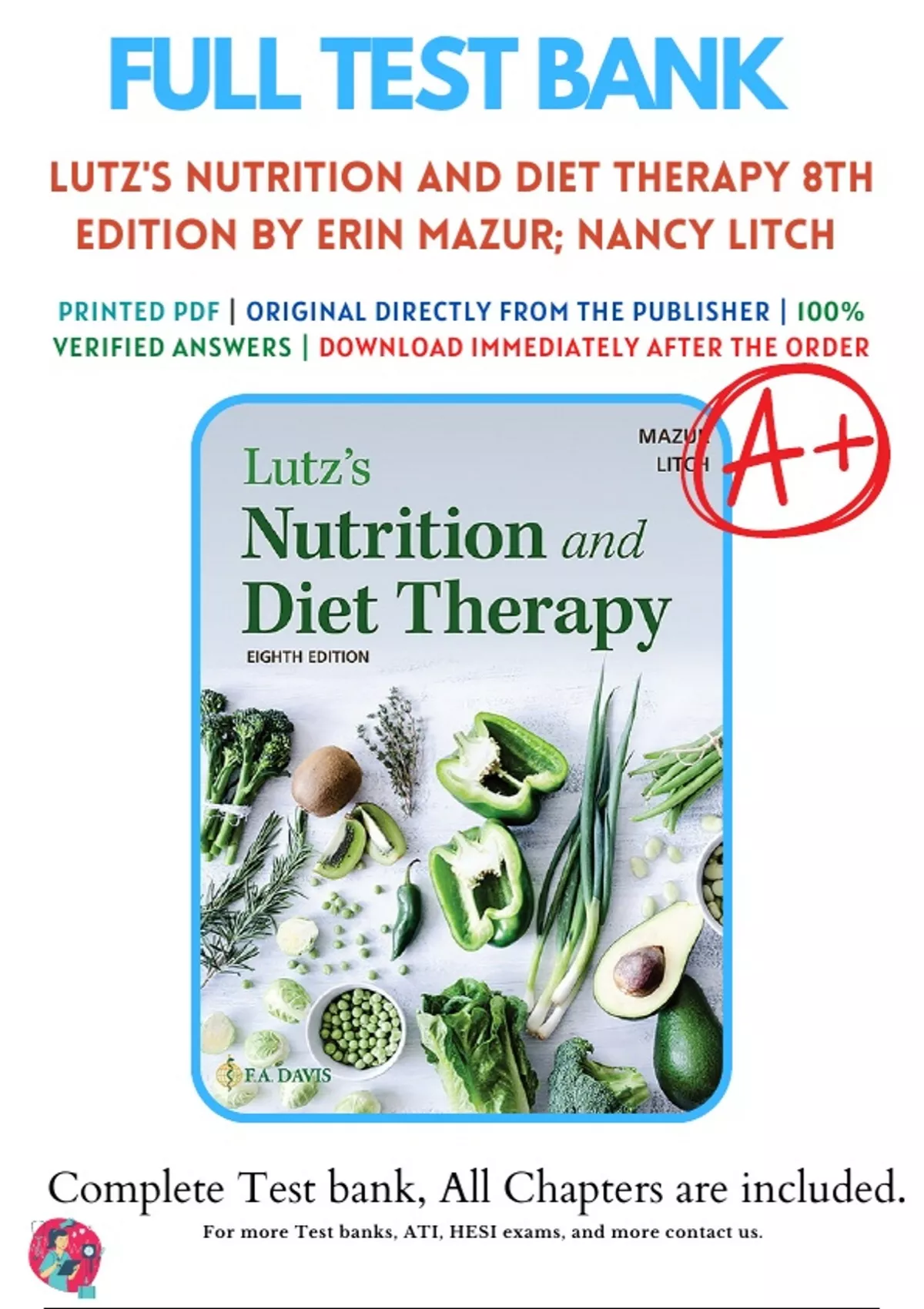 Test Bank for Lutzs Nutrition and Diet Therapy, 8th Edition by Erin E. Mazur | All Chapters with Answers and Rationals