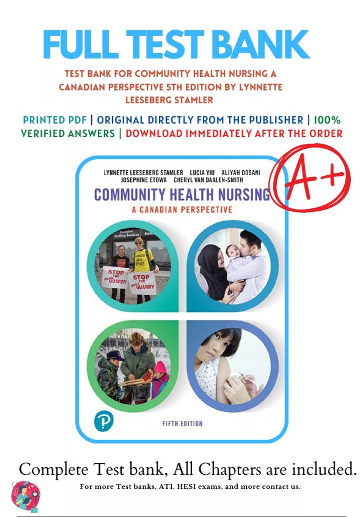 Test Bank For Community Health Nursing, A Canadian Perspective, 5th Edition (Stamler, 2020), Chapter 1-33 | 9780135309193 | All Chapters with Answers and Rationals