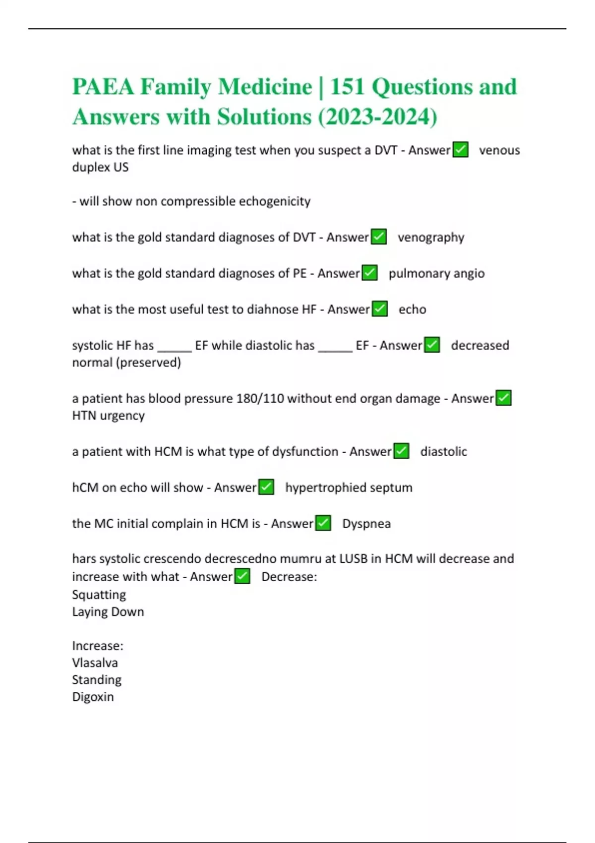 PAEA Family Medicine | 151 Questions and Answers with Solutions ()