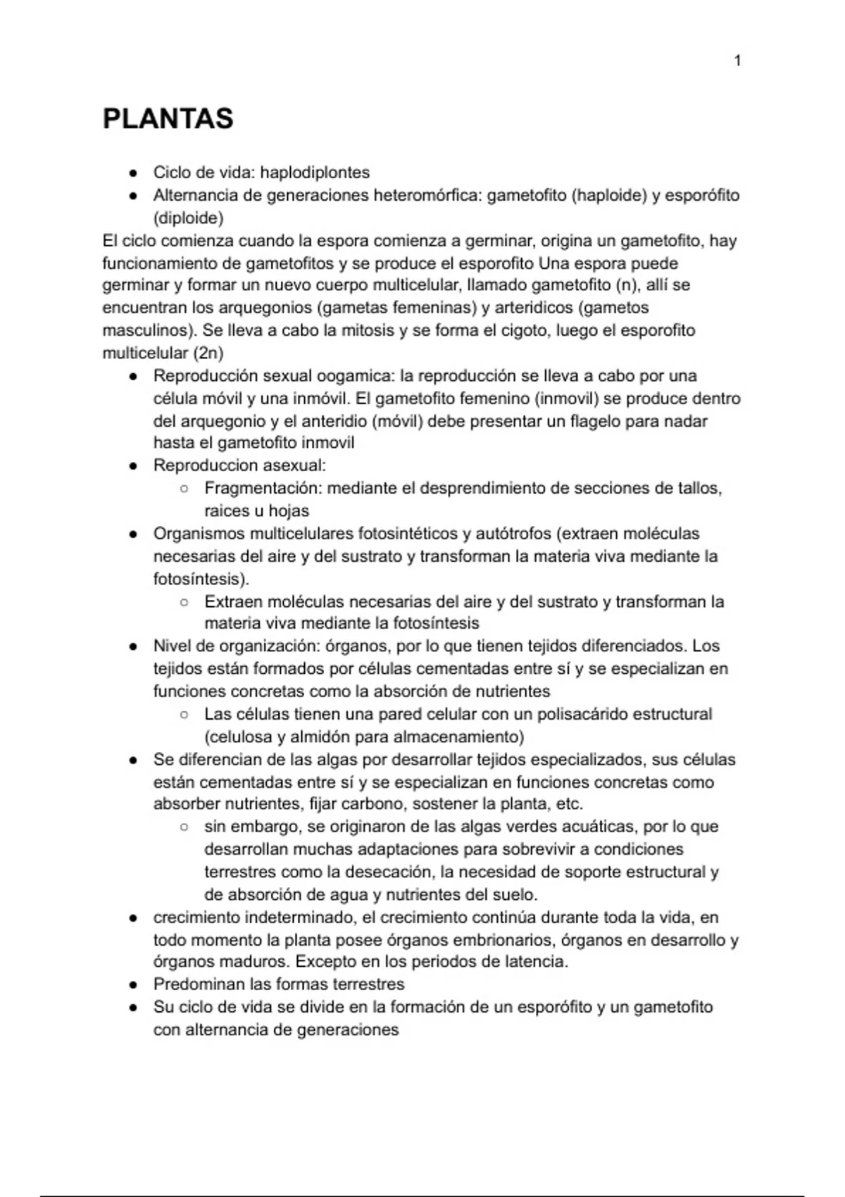 ○ Son haploides, la generación dominante es el gametofito