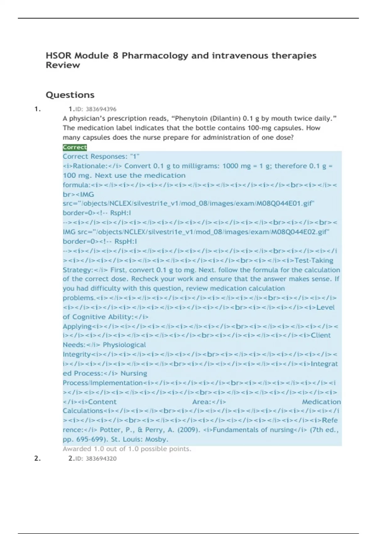HSOR Module 8 Pharmacology and intravenous therapies Review