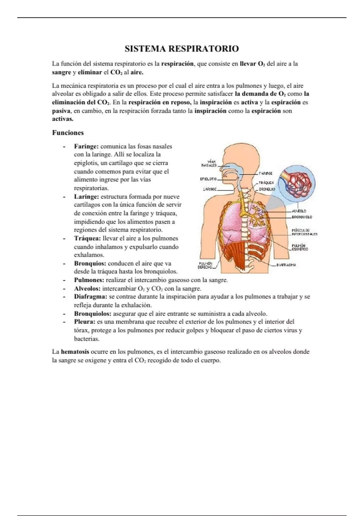 La función del sistema respiratorio es la respiración, que consiste en llevar O2 del aire a la
