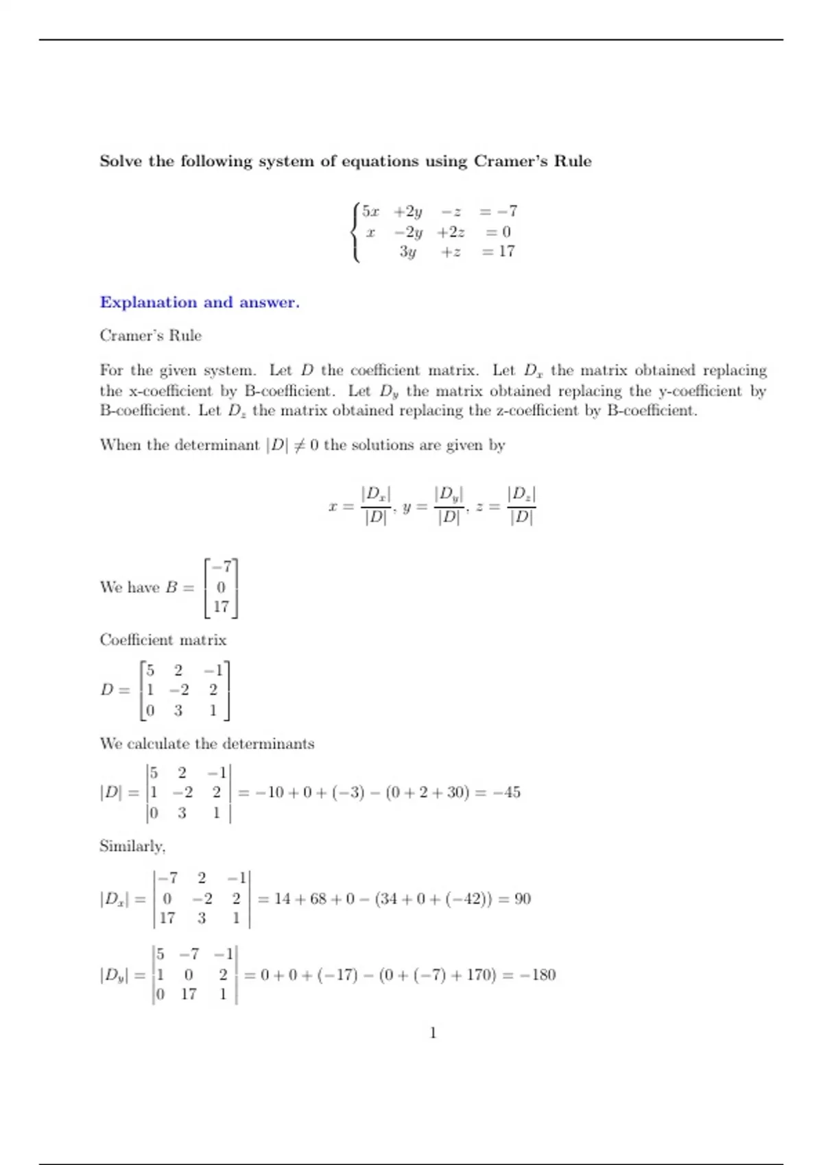 |Dy | = 1 0 2 = 0 + 0 + (−17) − (0 + (−7) + 170) = −180