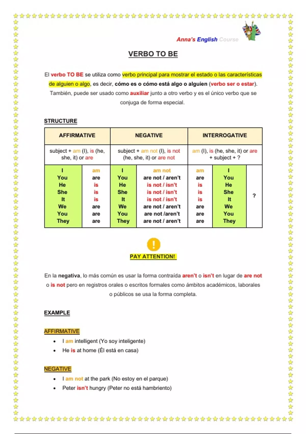 El verbo TO BE se utiliza como verbo principal para mostrar el estado o las características