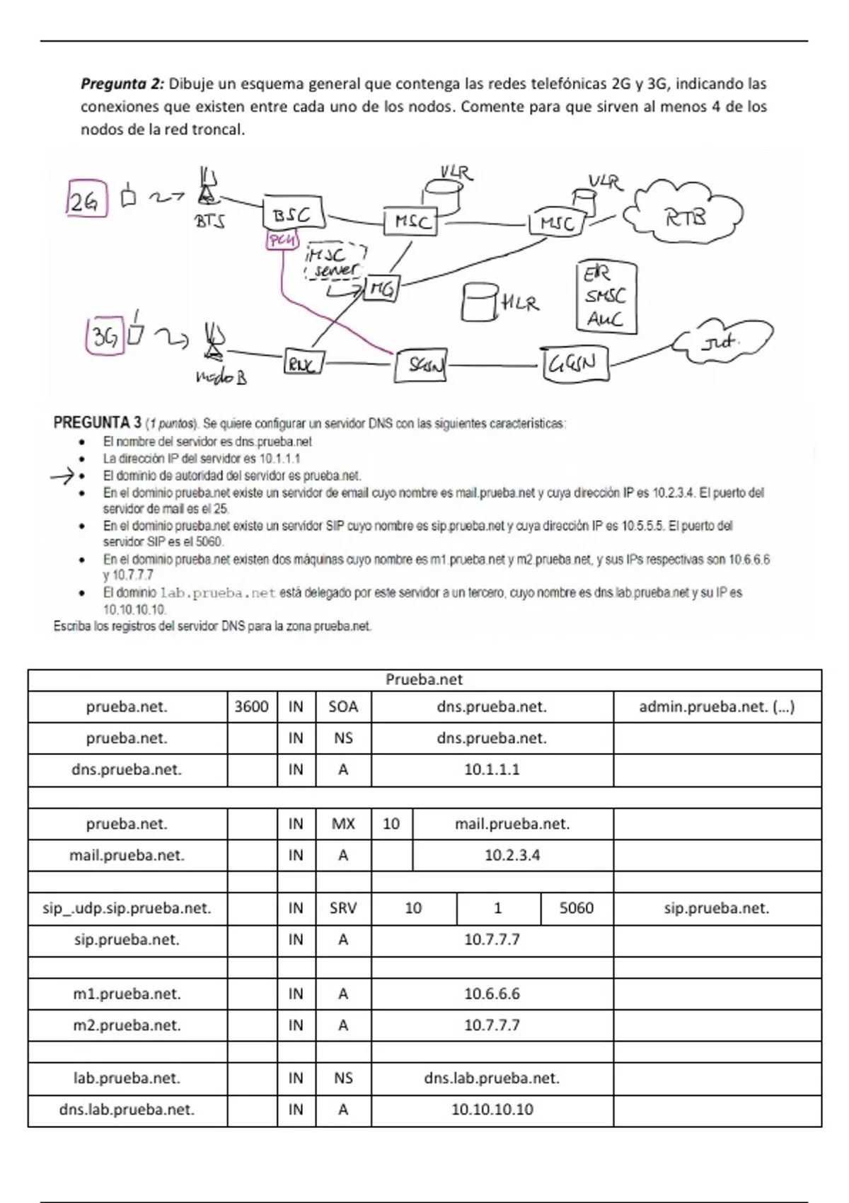 Pregunta 2: Dibuje un esquema general que contenga las redes telefónicas 2G y 3G, indicando las