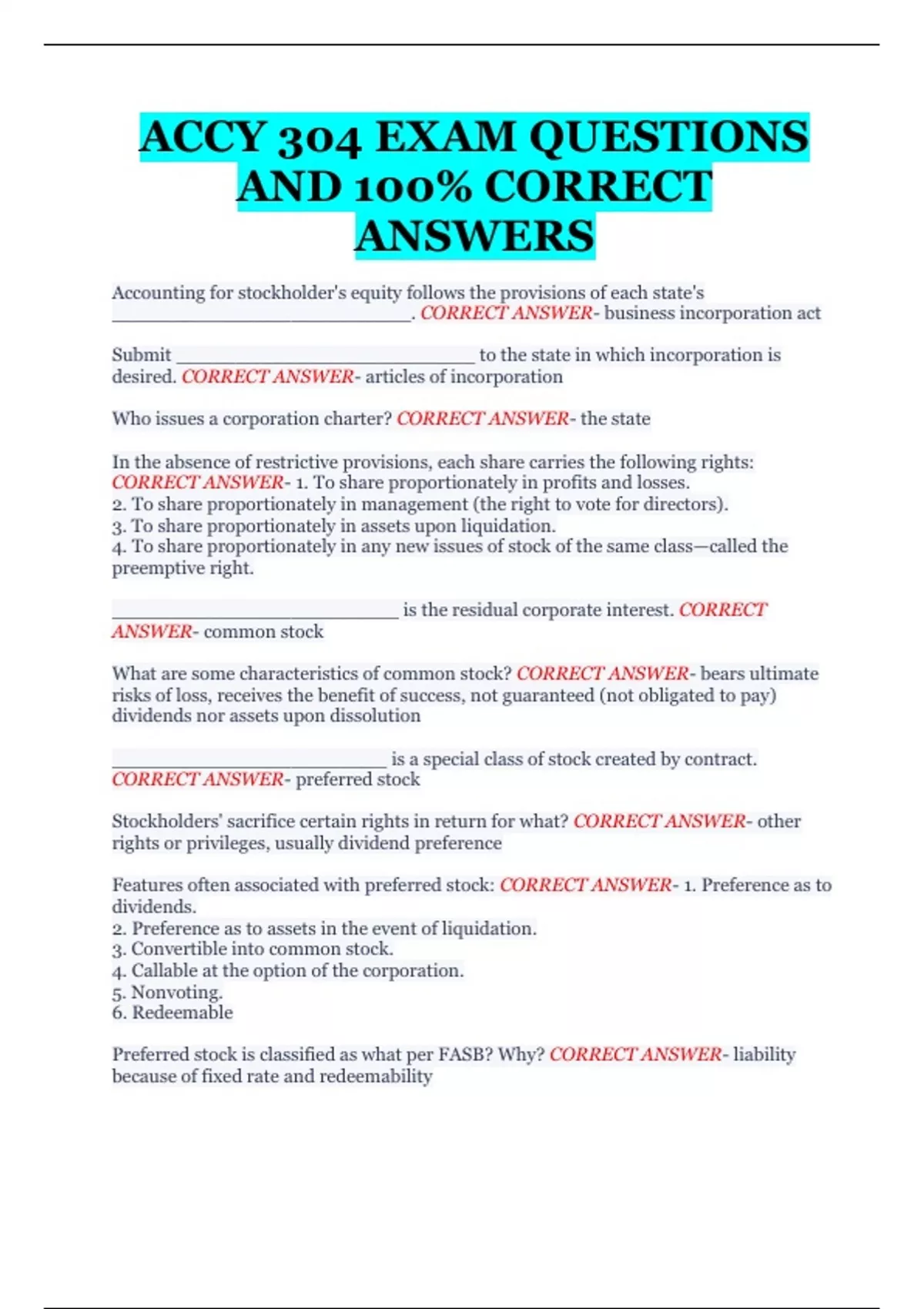 accy 304 exam questions and 100 correct answers
