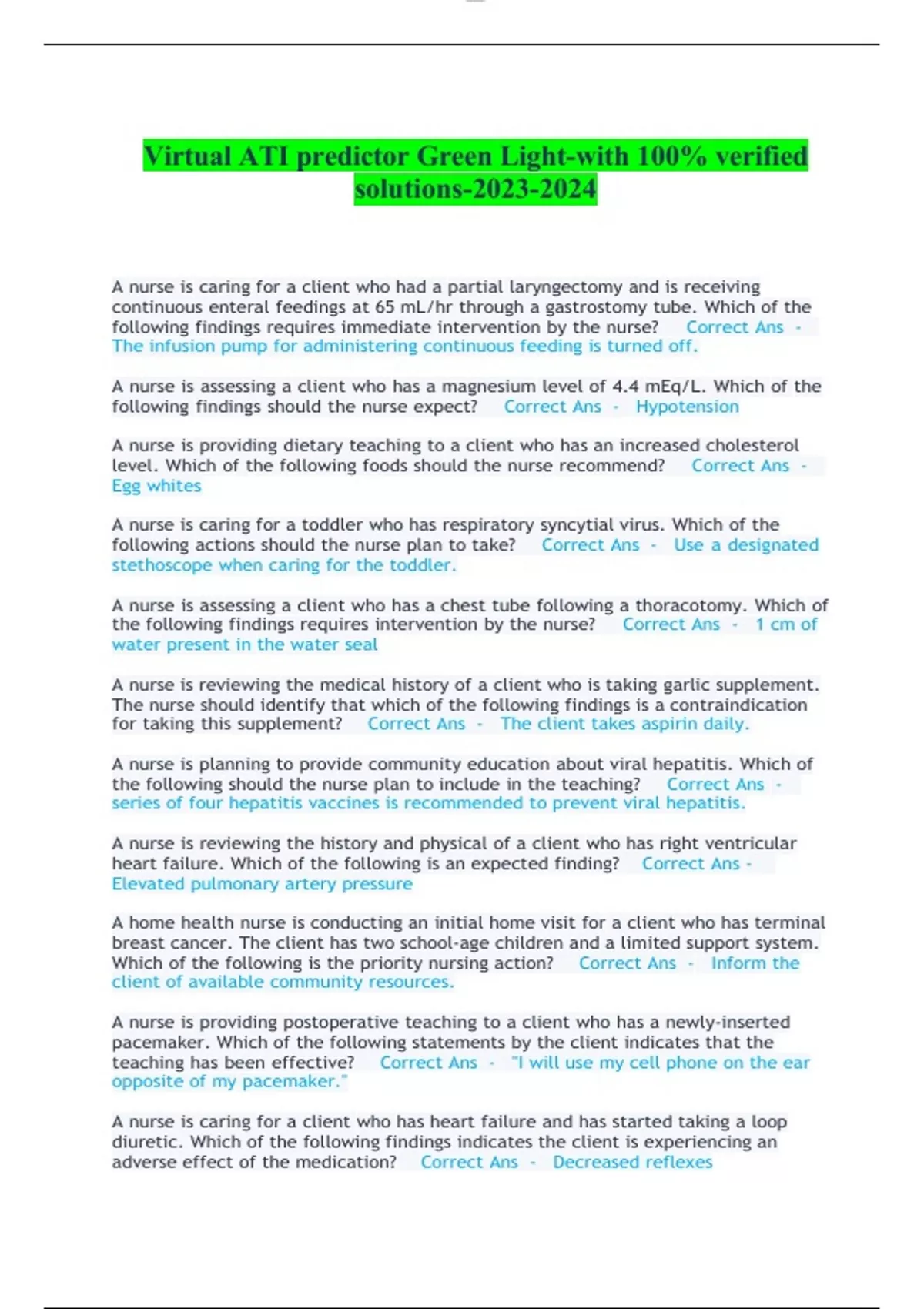 diuretic. Which of the following findings indicates the client is experiencing an adverse effect of the medication?Correct Ans -Decreased reflexes lOMoARcPSD|12263423