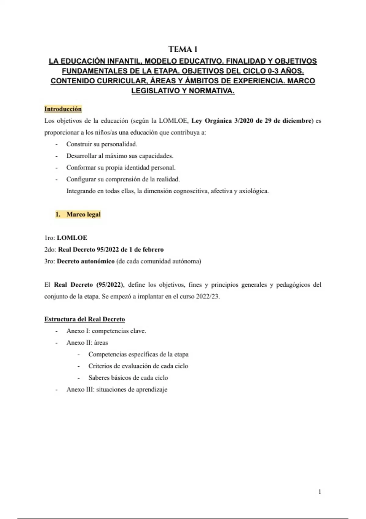 El Real Decreto (95/2022), define los objetivos, fines y principios generales y pedagógicos del