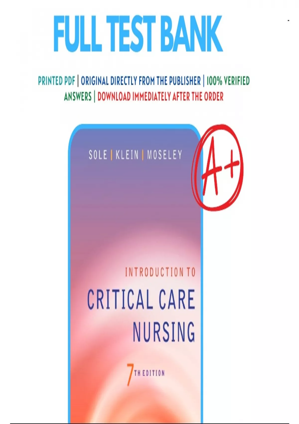 Test Bank For Introduction to Critical Care Nursing, 7th Edition (Sole, 2017), Chapter 1-21 | 9780323377034 | All Chapters with Answers and Rationals