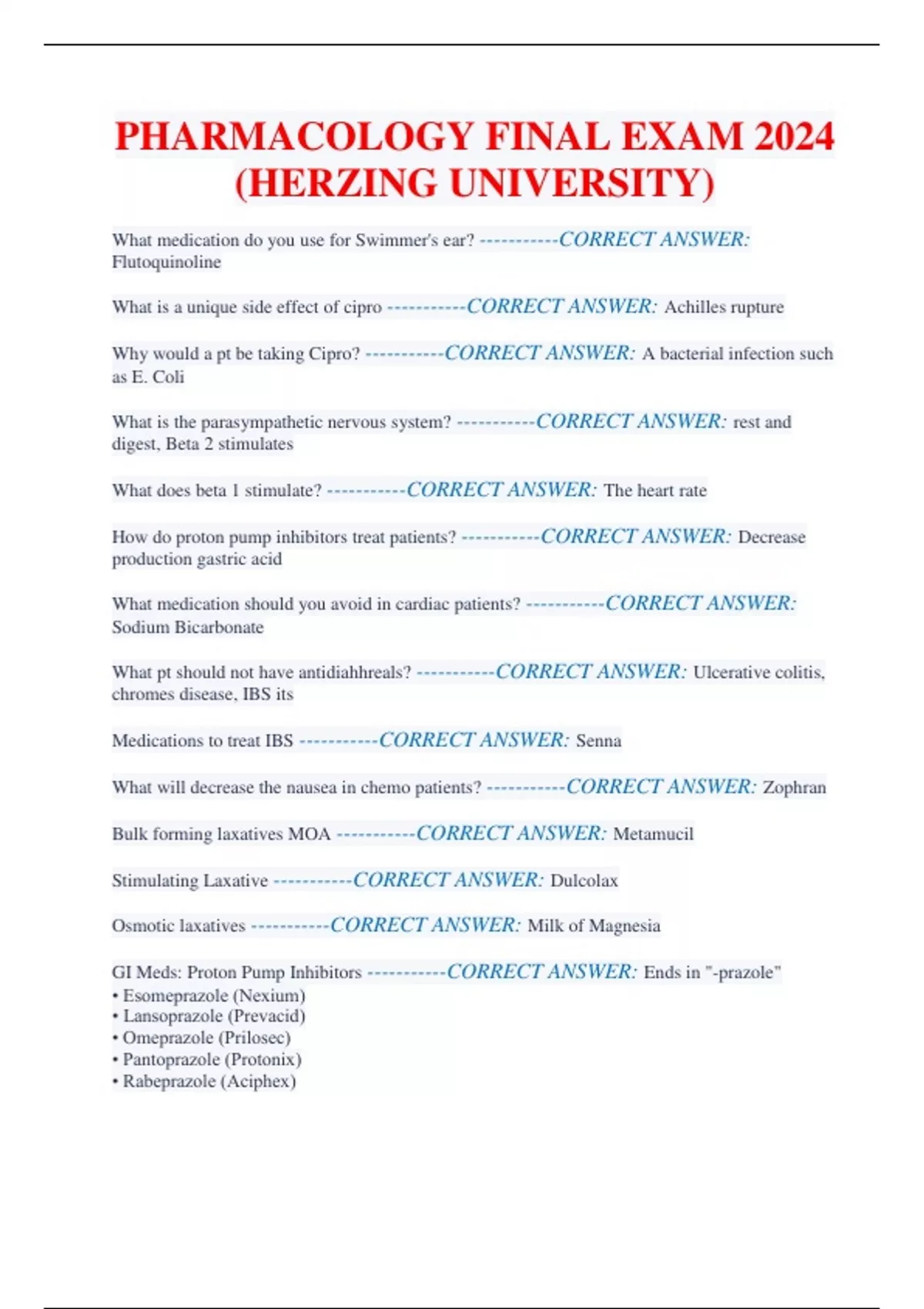 PHARMACOLOGY FINAL EXAM 2024 (HERZING UNIVERSITY)