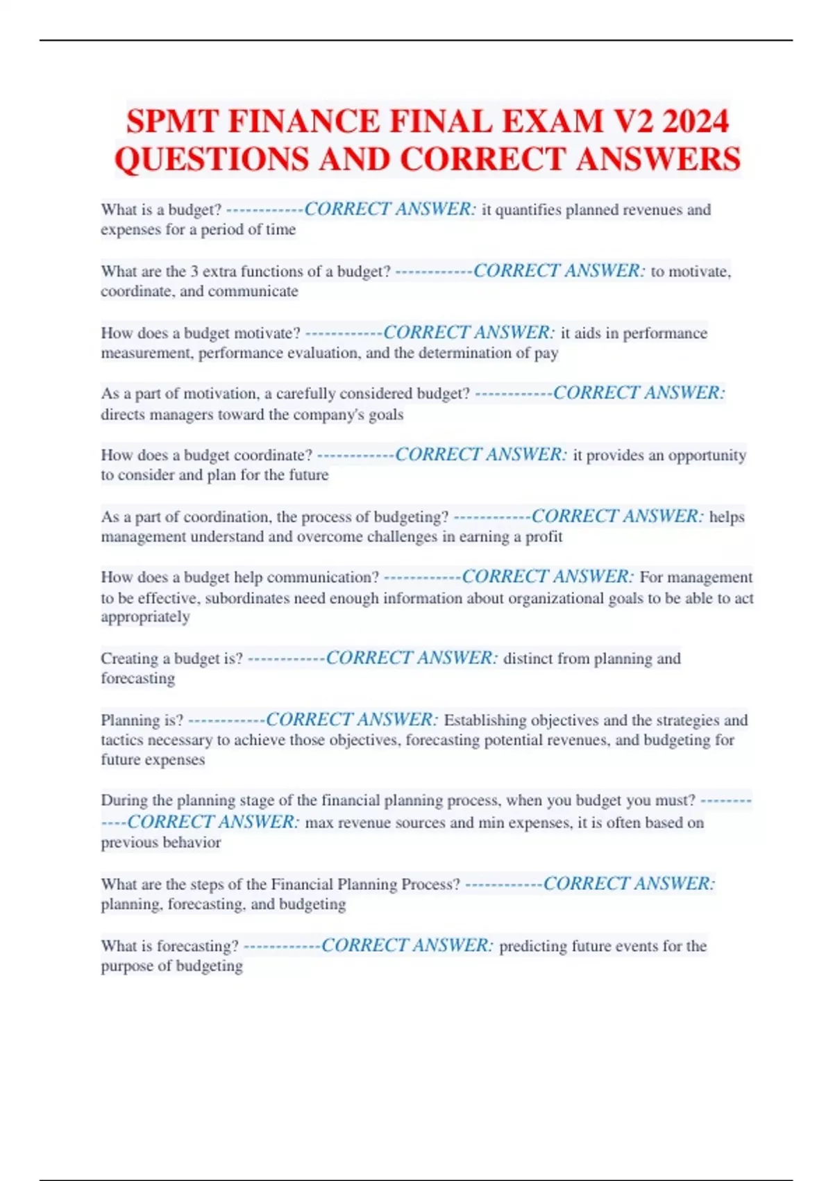 SPMT FINANCE FINAL EXAM V2 2024 QUESTIONS AND CORRECT ANSWERS