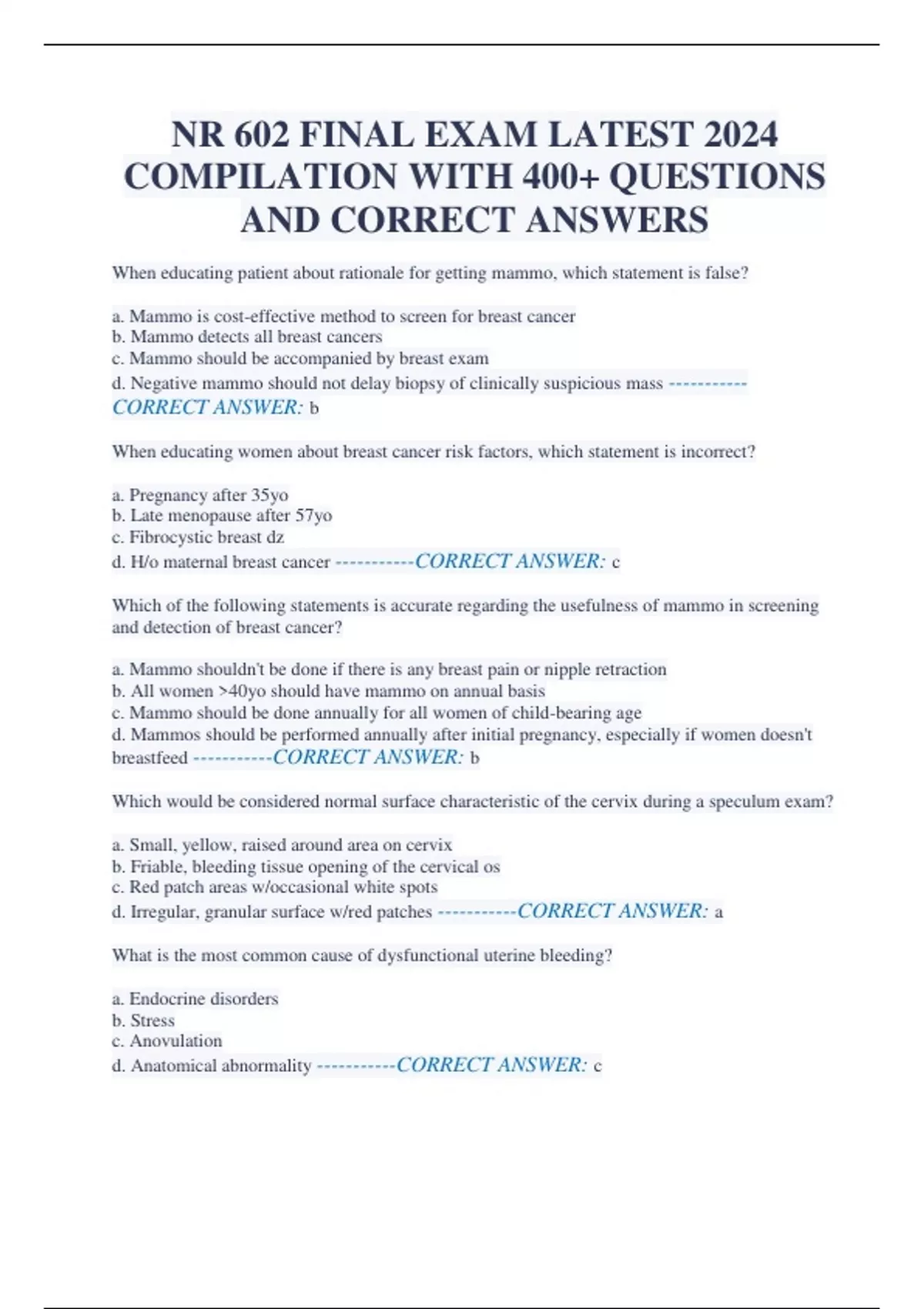 NR 602 FINAL EXAM LATEST 2024 COMPILATION WITH 400+ QUESTIONS AND CORRECT ANSWERS