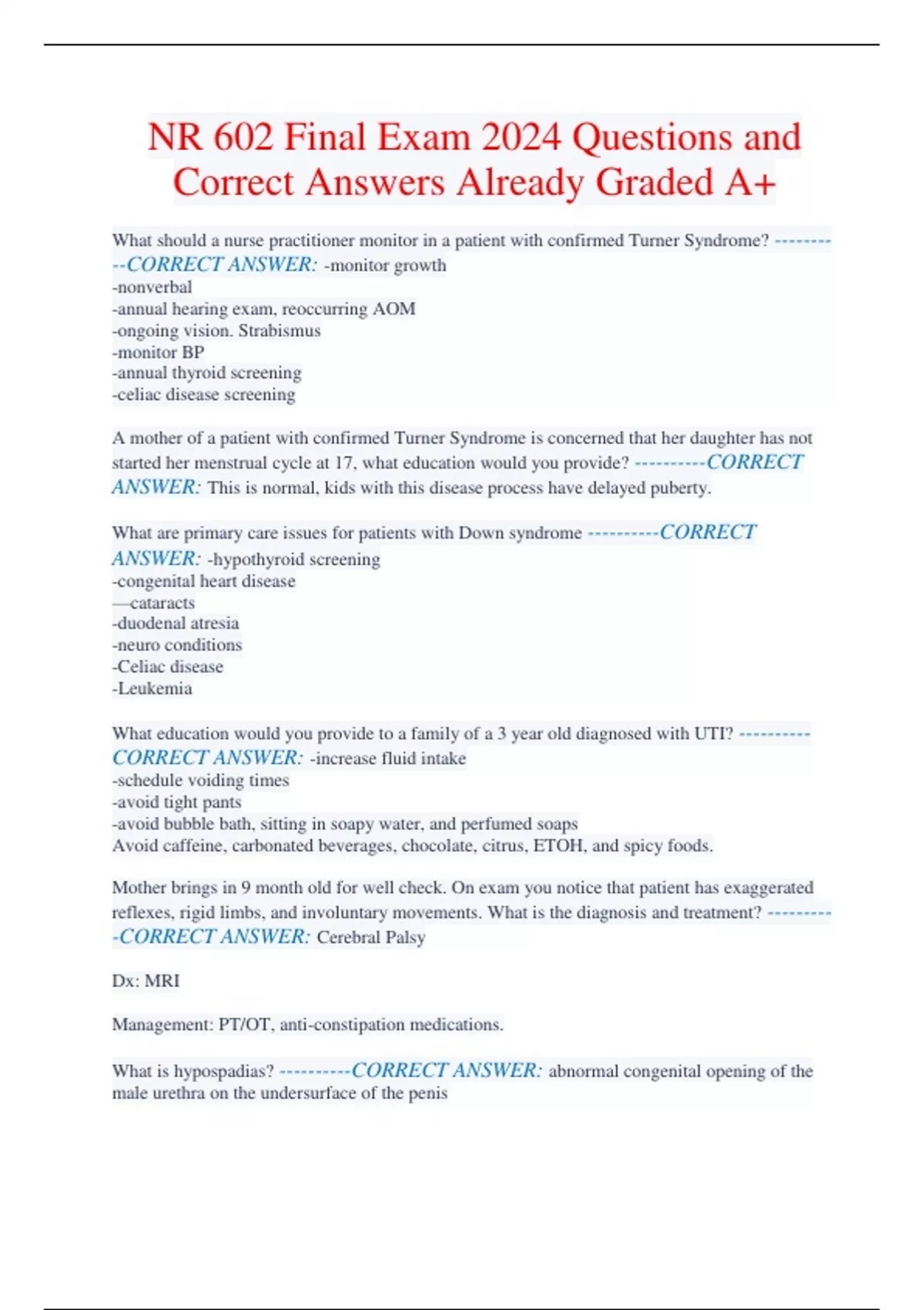NR 602 Final Exam 2024 Questions and Correct Answers Already Graded A+