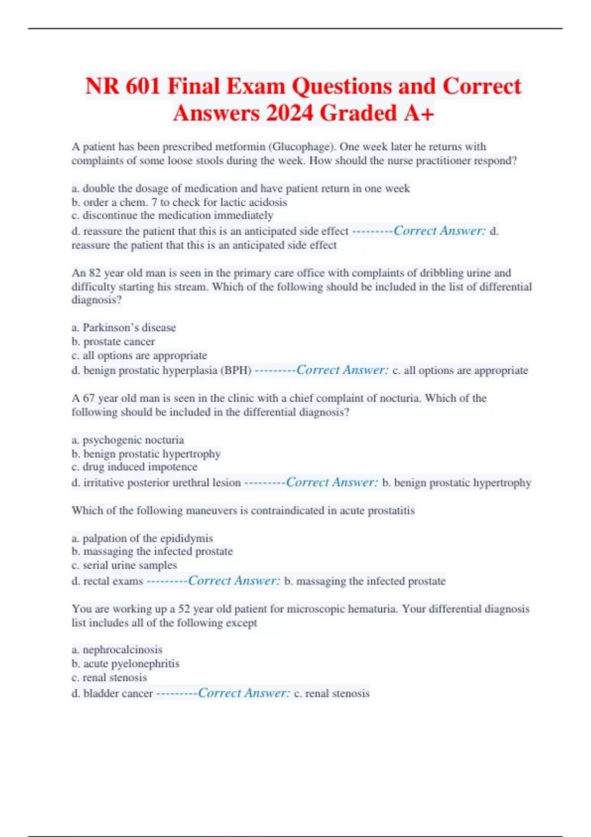 NR 601 Final Exam Questions and Correct Answers 2024 Graded A+