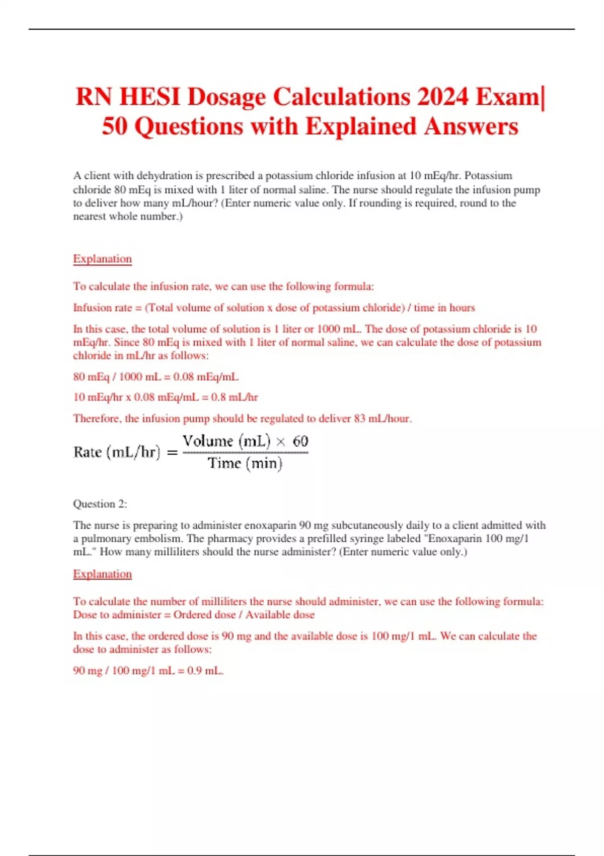 RN HESI Dosage Calculations 2024 Exam| 50 Questions with Explained Answers